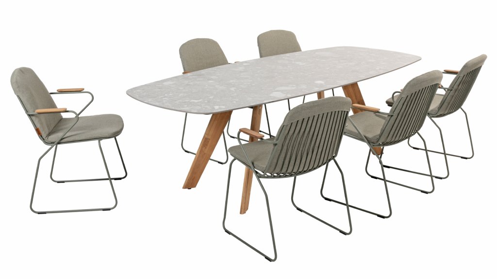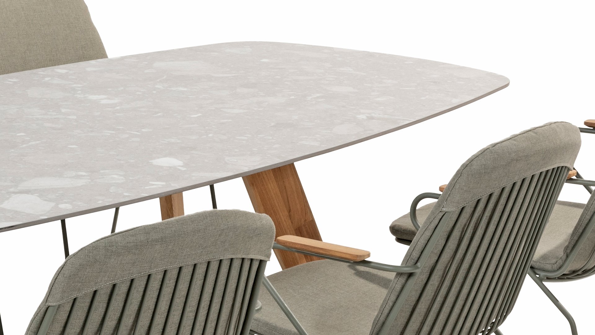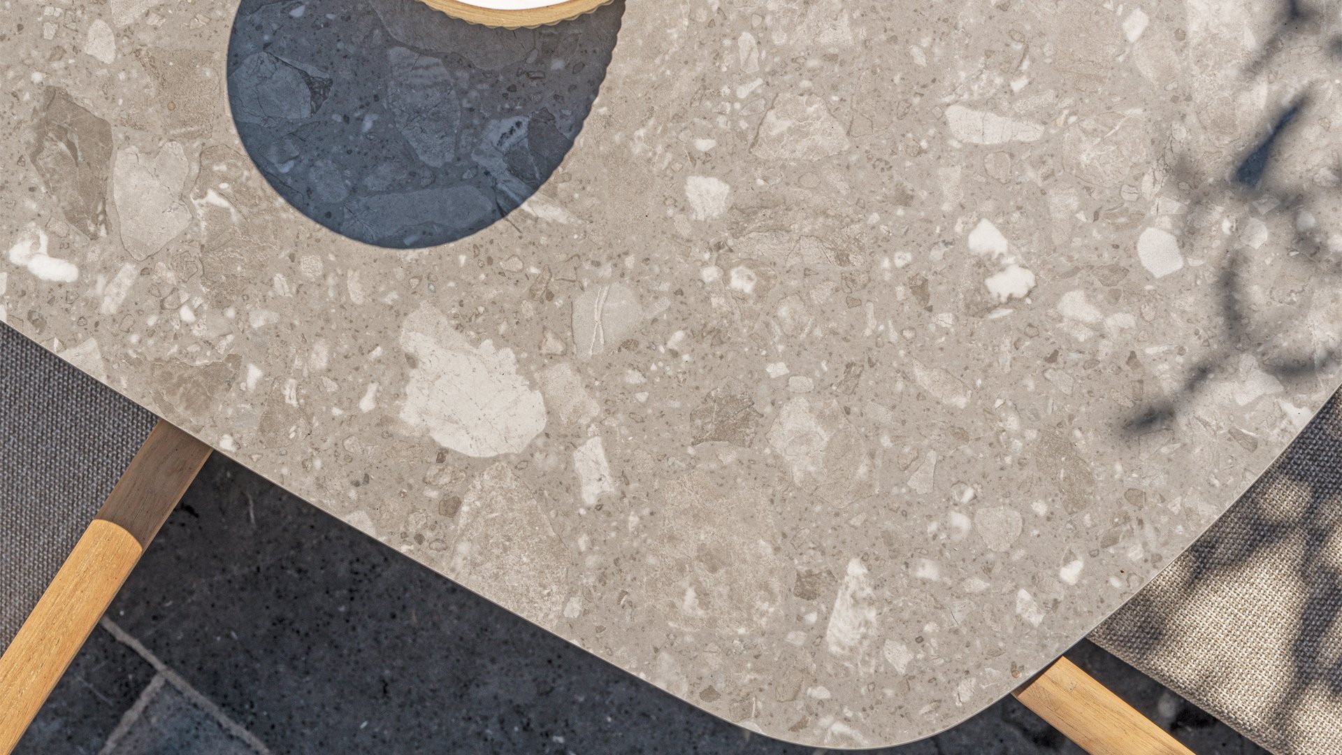1 x 4Seasons Outdoor Montana Tisch 240x103cm Teak Ceramic Terrazzo