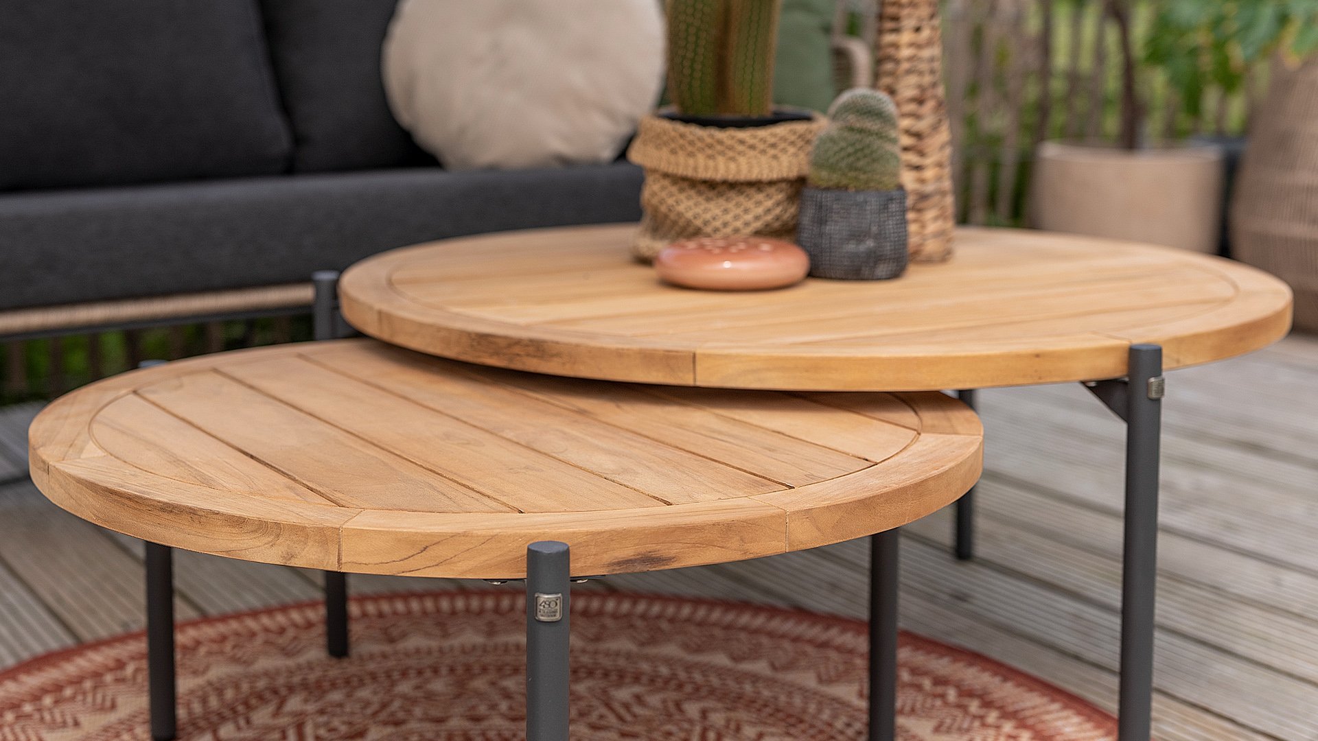 1 x 4Seasons Yoga Kaffeetisch Anthrazit Teak/Alu Ø 90cm