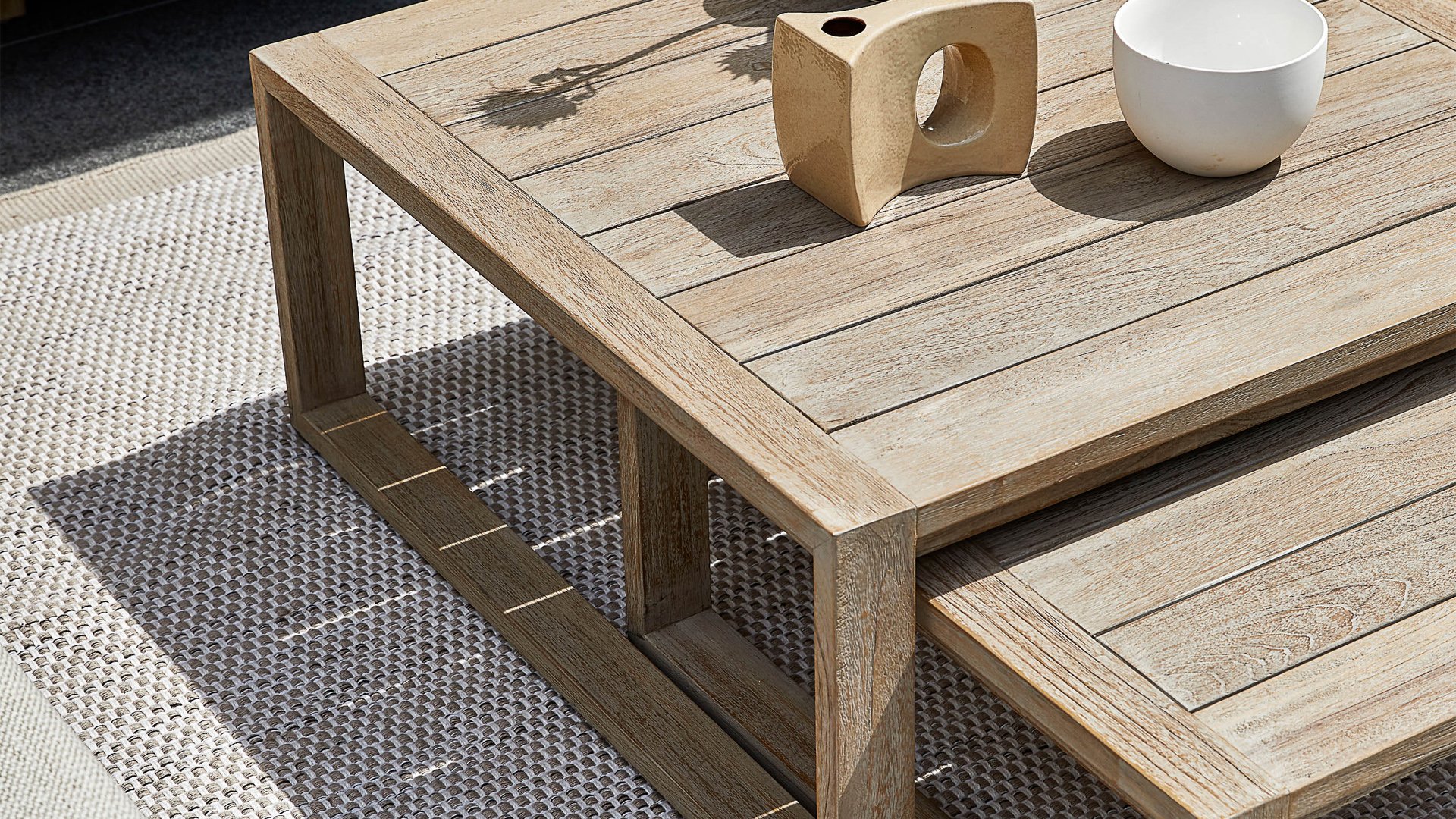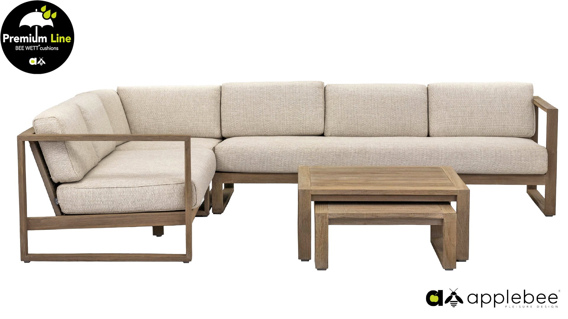 Die Apple Bee Antigua-Kollektion besteht aus einem Esstischgruppe, einem Loungegruppe und einer Sonnenliege. Diese Möbelkollektion ist aus Teakholz mit einem Coastal Farbfinish und einem Geflecht aus echter Handwerkskunst gefertigt. Dieses Lounge-Set ist unverzichtbar für Ihren Garten. Die extrem dicken Kissen in der Farbe ‚Natural Oak‘ sorgen dafür, dass Sie sich vollkommen entspannen können und sind durch unsere eigene Technologie wasser- und wetterfest. Sie können die Möbel nach Ihren eigenen Wünschen zusammenstellen! Es gibt zum Beispiel einen Satz von zwei Couchtischen, die Sie nach Belieben selbst aufstellen können.