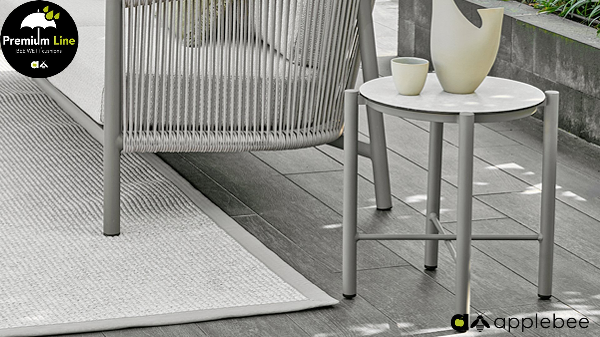 Der Apple Bee Bora Bora Couchtisch-Set, dessen Gestell aus Aluminium in der Farbe Taupe besteht. Die Platte ist aus Keramik in der Farbe Travetino White, daher sehr pflegeleicht. Dieses Kaffeetisch-Set ist dazu gedacht, mit der Apple Bee Bora Bora Loungeset kombiniert zu werden, kann aber auch in Kombination mit anderen Lounge-Serien für einen Hauch von Eleganz sorgen. Unten finden Sie die einzelnen Kaffee- und Beistelltische: