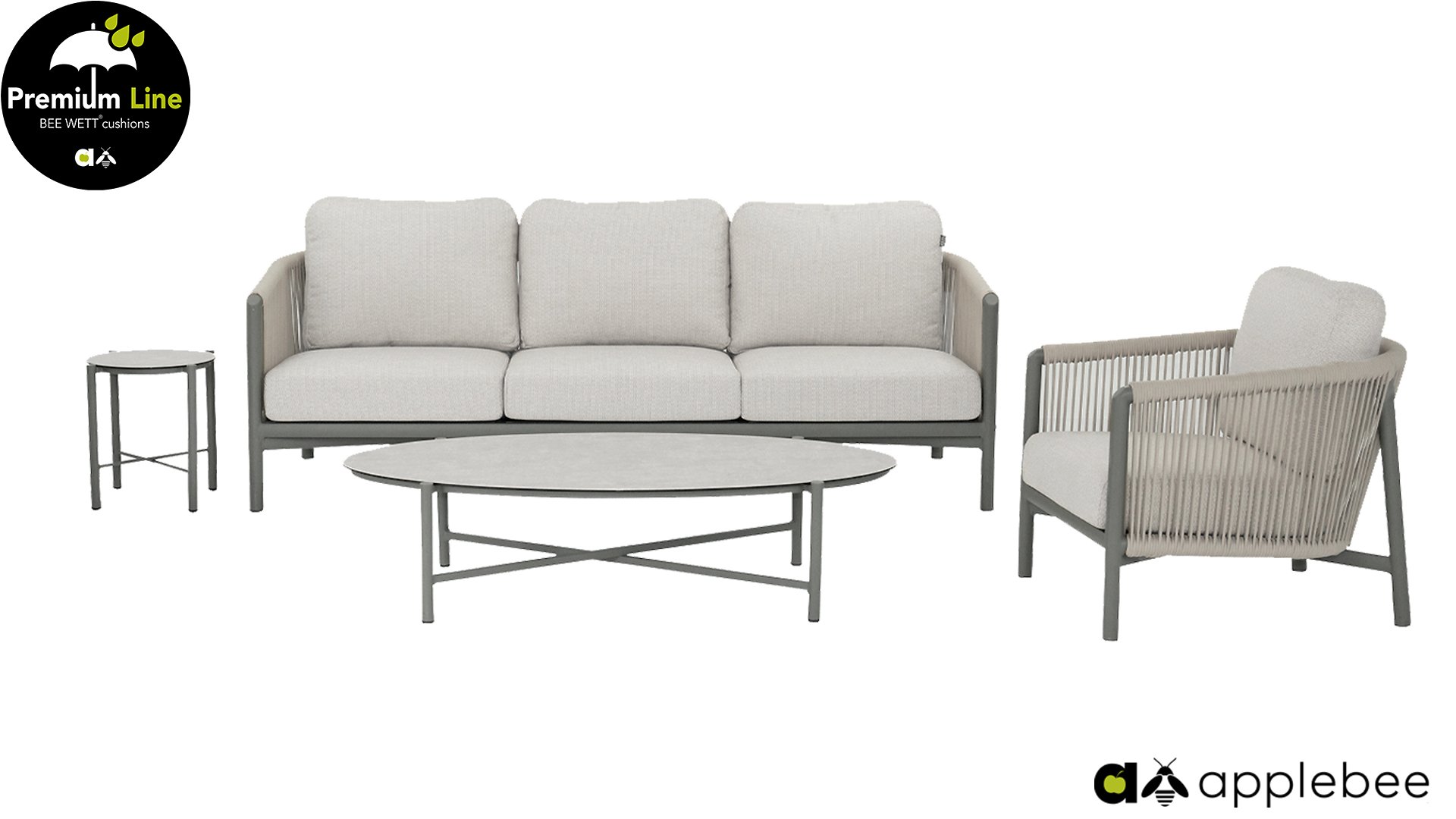 Die Apple Bee Bora Bora Lounge Kollektion ist minimalistisch, elegant und sauber. Sie zeichnet sich durch das zweischichtige geflochtene Seil aus, durch das man hindurchsehen kann. Die feinen, gebogenen Formen dieses Möbels sorgen für ein klares, aber dennoch elegantes Erscheinungsbild. In Kombination mit dem harmonischen Zusammenspiel der Taupe-Farben und des Seils ist das luxuriöse Bora Bora eine wunderschöne Ergänzung im Garten. Natürlich ist dieses Lounge-Set auch wieder mit den Bee Wett®-Kissen ausgestattet. Diese Bee Wett®-Kissen sind spezielle wetterfeste Kissen. Das offene Gewebe an der Unterseite des Kissens sorgt für eine perfekte Drainage. Dadurch trocknet Ihr Bee Wett-Kissen spektakulär viel schneller als andere Kissen. Darüber hinaus ist der Stoff beständig gegen Fäulnis und Schimmel, UV-beständig, feuchtigkeitsbeständig, weich und komfortabel.