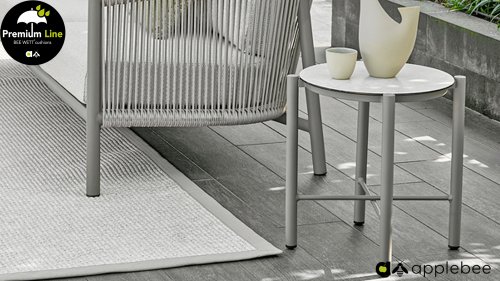 Bei Apple Bee verwenden wir Seil als hochwertiges Geflechtmaterial für unsere Outdoor-Möbel. Dieses speziell entwickelte Seil ist robust, langlebig, pflegeleicht, schnelltrocknend und UV-beständig, sodass es in der Sonne nicht ausbleicht. Seil besteht aus wasserabweisenden, weichen Fasern aus dem gleichen Material wie unsere Olefin-Gewebe, die um einen starken, PVC-beschichteten Polyesterkern gewebt sind. Dies sorgt für hervorragenden Komfort, auch ohne Kissen. Die Reinigung ist einfach: Lose Verschmutzungen entfernen, mit einem milden Reinigungsmittel und Wasser abwischen, gründlich abspülen und die Möbel vollständig trocknen lassen. Regelmäßige Pflege erhält den optimalen Zustand Ihrer Möbel.