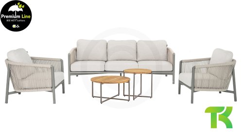 Die Apple Bee Bora Bora Lounge Kollektion ist minimalistisch, elegant und sauber. Sie zeichnet sich durch das zweischichtige geflochtene Seil aus, durch das man hindurchsehen kann. Die feinen, gebogenen Formen dieses Möbels sorgen für ein klares, aber dennoch elegantes Erscheinungsbild. In Kombination mit dem harmonischen Zusammenspiel der Taupe-Farben und des Seils ist das luxuriöse Bora Bora eine wunderschöne Ergänzung im Garten. Natürlich ist dieses Lounge-Set auch wieder mit den Bee Wett®-Kissen ausgestattet. Diese Bee Wett®-Kissen sind spezielle wetterfeste Kissen. Das offene Gewebe an der Unterseite des Kissens sorgt für eine perfekte Drainage. Dadurch trocknet Ihr Bee Wett-Kissen spektakulär viel schneller als andere Kissen. Darüber hinaus ist der Stoff beständig gegen Fäulnis und Schimmel, UV-beständig, feuchtigkeitsbeständig, weich und komfortabel.