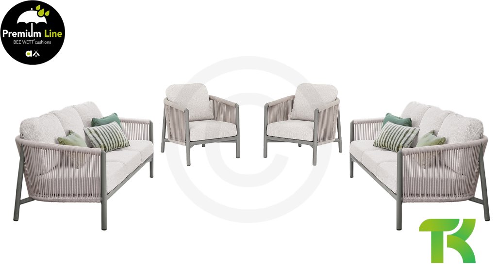 Bei Apple Bee verwenden wir Seil als hochwertiges Geflechtmaterial für unsere Outdoor-Möbel. Dieses speziell entwickelte Seil ist robust, langlebig, pflegeleicht, schnelltrocknend und UV-beständig, sodass es in der Sonne nicht ausbleicht. Seil besteht aus wasserabweisenden, weichen Fasern aus dem gleichen Material wie unsere Olefin-Gewebe, die um einen starken, PVC-beschichteten Polyesterkern gewebt sind. Dies sorgt für hervorragenden Komfort, auch ohne Kissen. Die Reinigung ist einfach: Lose Verschmutzungen entfernen, mit einem milden Reinigungsmittel und Wasser abwischen, gründlich abspülen und die Möbel vollständig trocknen lassen. Regelmäßige Pflege erhält den optimalen Zustand Ihrer Möbel.