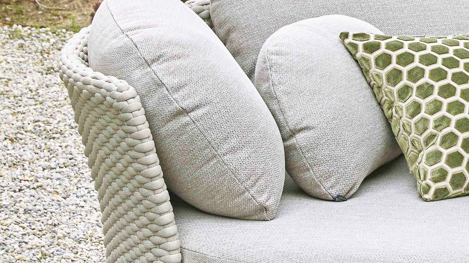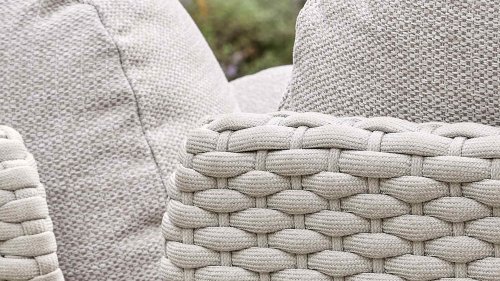 Dieses wunderschöne Material eignet sich perfekt für den Außenbereich, denn AppleBee Rope ist nicht nur eine normale Spitze, an der Sie Ihre Schuhe binden können. AppleBee verwendet ein sehr hochwertiges Faser aus 100% SDP (Slution Dyed Polypropylen). Dieses Material ist extrem stark und hat einen sehr geringen Stretchanteil. Polypropylen ist auf Ölbasis, so dass Schmutz und Verunreinigungen, genau wie unsere Kissen, kaum eindringen können. AppleBee bietet exklusive Designs mit handgeflochtenen Geflechtmustern und -techniken.