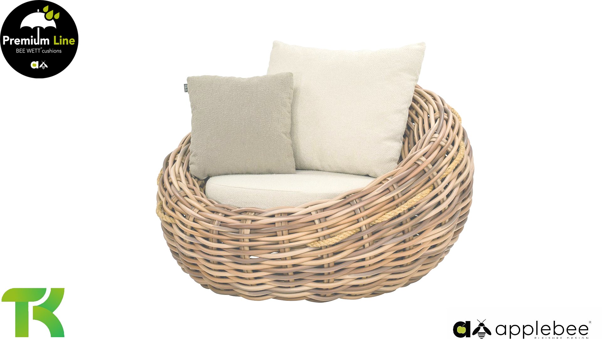 Der Applebee's Cocoon ist inspiriert vom sicheren Kokon, in dem sich eine Raupe in einen wunderschönen Schmetterling verwandelt. Wunderschöne cremefarbene Bouclé-Loungekissen mit Bee Wett®-Technologie – kombiniert mit dem besonders dicken, 20 mm starken Biculair®-Geflechtgarn!