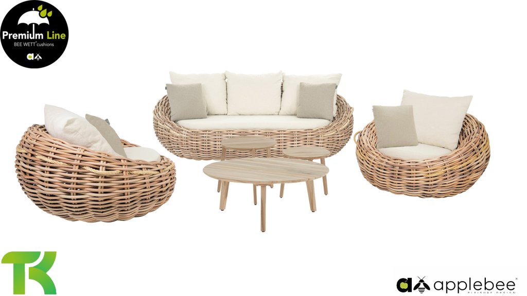 AppleBee Bee Wett sind spezielle wetterfeste Kissen die natürlich draußen liegen bleiben können. Die abnehmbaren Hüllen werden aus den besten möglichen Stoffen hergestellt und sind alle waschbar auf 30°C. Der Stoff ist zusätzlich wasserabstoßend  und garantiert UV-beständig. Eine offenes Gewebe an der Unterseite der Kissen sorgt für eine perfekte Drainage. Der Vorteil, dass die Bee Wett Kissen und Polster unglaublich viel schneller trocknen als vergleichbare andere Kissen. Das Stoff hat eine gute Beständigkeit gegen Verfaulen und Stockflecken und darüber hinaus UV-beständig, weich, komfortabel und feuchtigkeitsabstoßend ist. Die Polster sind ausziehbar und waschbar.