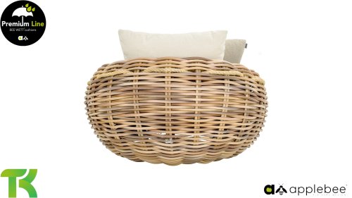Apple Bee zeichnet sich durch die Verwendung des speziellen Biculair®-Geflechts aus, das ursprünglich für den professionellen Einsatz im Gastgewerbe entwickelt wurde. Dieses Biculair®-Geflecht ist eine naturgetreue und nachhaltige Alternative zu Rattan. Die äußerst strapazierfähige synthetische Rattanfaser (HDPE) ist absolut wetterfest, farbecht, recycelbar und somit eine umweltfreundliche Wahl. Aussehen und Funktionalität der Möbel bleiben von den europäischen Witterungsbedingungen unbeeinträchtigt, und die Farben behalten ihre natürliche Leuchtkraft. Die überlegene Qualität dieses Geflechts, bestätigt von der Niederländischen Organisation für Angewandte Naturwissenschaftliche Forschung (TNO), zeigt sich deutlich im Vergleich zu anderen vergleichbaren Materialien.