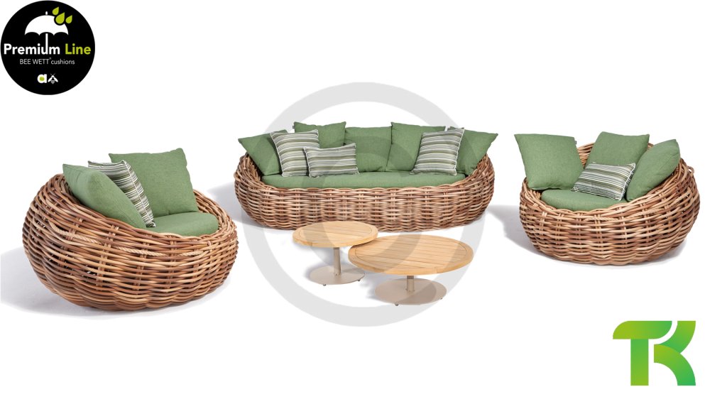 Applebee Cocoon ist inspiriert durch den sicheren Kokon, in dem sich eine Raupe geborgen fühlt und sich in einen wunderschönen Schmetterling verwandelt. Wunderschöne grüne Loungekissen – optional mit Bee-Wett®-Technologie – in Kombination mit dem außergewöhnlich dicken geflochtenen Biculair®-Flechtfaden in 20mm Stärke.