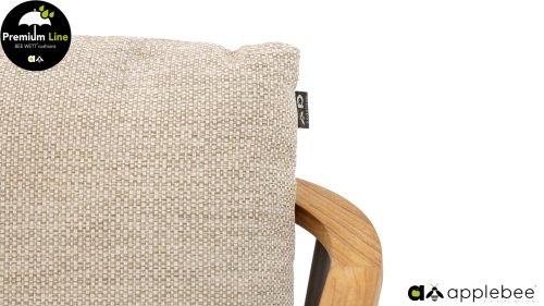 AppleBee Bee Wett sind spezielle wetterfeste Kissen die natürlich draußen liegen bleiben können. Die abnehmbaren Hüllen werden aus den besten möglichen Stoffen hergestellt und sind alle waschbar auf 30°C. Der Stoff ist zusätzlich wasserabstoßend und garantiert UV-beständig. Eine offenes Gewebe an der Unterseite der Kissen sorgt für eine perfekte Drainage. Der Vorteil, dass die Bee Wett Kissen und Polster unglaublich viel schneller trocknen als vergleichbare andere Kissen. Das Stoff hat eine gute Beständigkeit gegen Verfaulen und Stockflecken und darüber hinaus UV-beständig, weich, komfortabel und feuchtigkeitsabstoßend ist. Die Polster sind ausziehbar und waschbar.