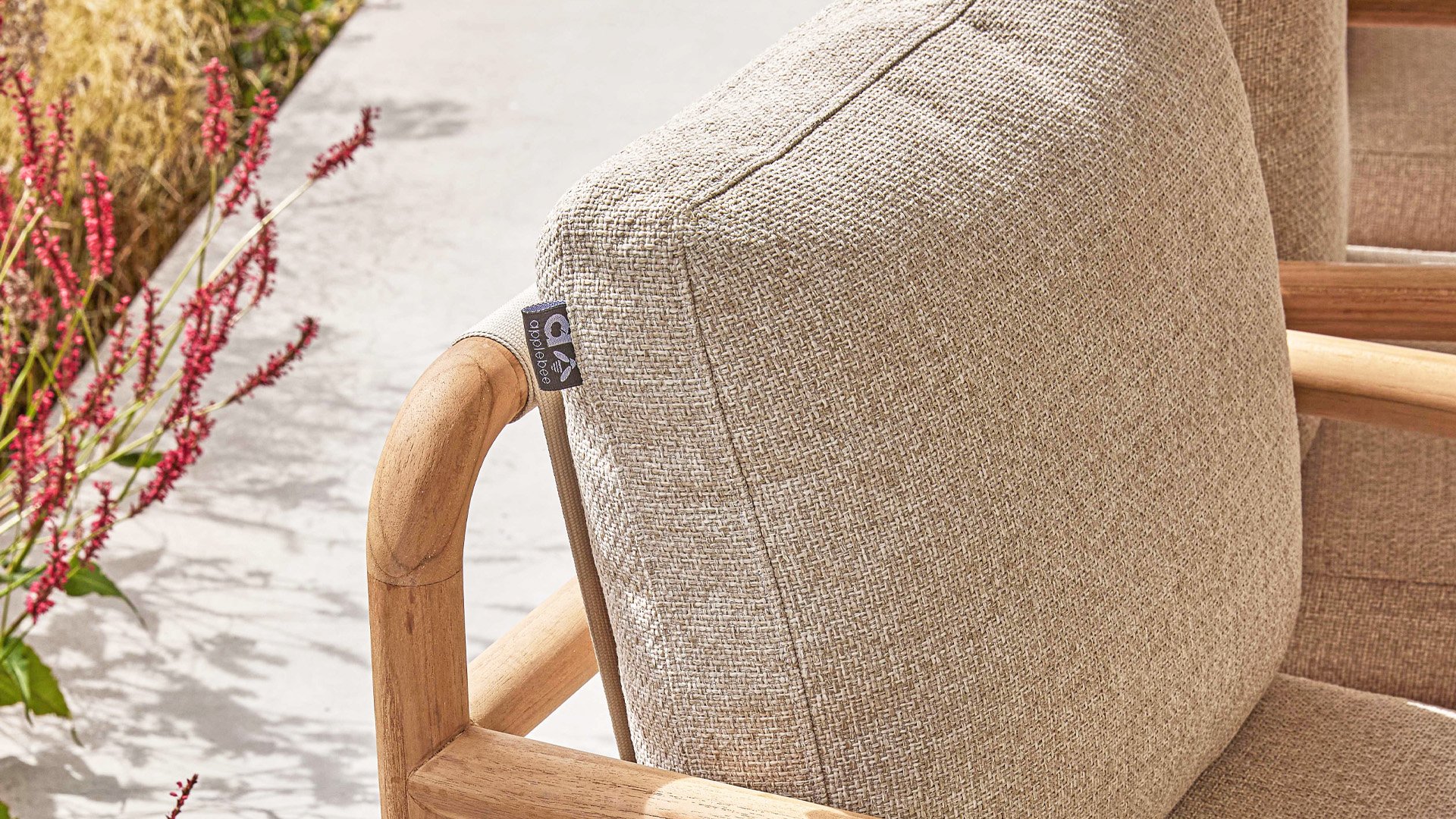 Die Kissen sind in der Farbe Cotton Flower gehalten und verfügen über die bewährte Bee Wett®-Technologie. Die Kissen haben einen Olefin-Bezug, der abnehmbar ist und bei 30 Grad gewaschen werden kann. Dieser Stoff ist sehr wetterbeständig und langlebig.