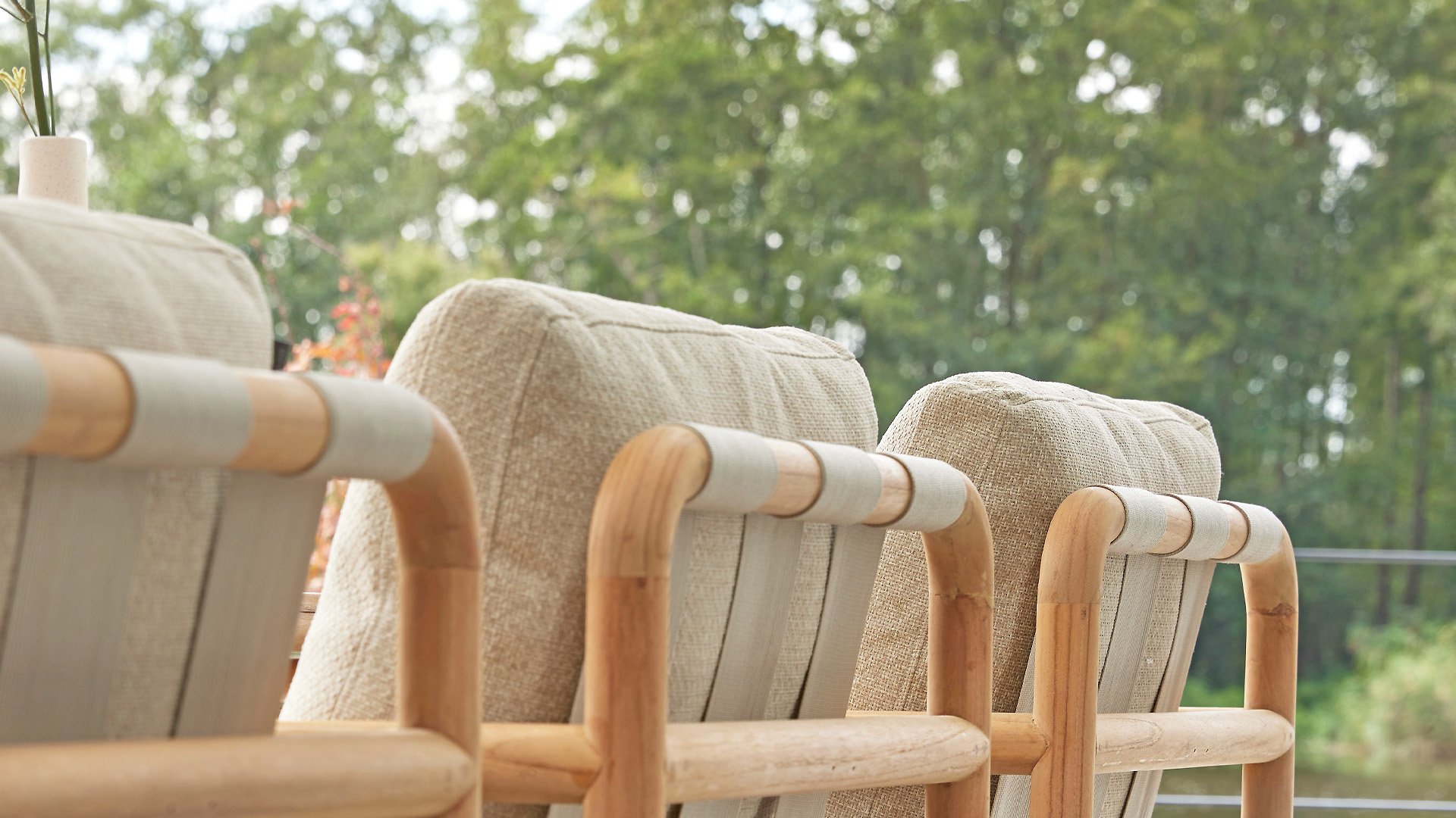 Weniger ist mehr, in der Dolce Cotton Flower Lounge- und Dining Serie sind die Gartenmöbel minimalistisch aber ländlich gestaltet, hauptsächlich funktional einfach und mit anmutigen runden Formen. Die runden Formen halten dieses Design vollkommen im Gleichgewicht. Der Sitz- und Rückenteil ist aus Belt-Geflecht für eine angenehme Unterstützung und ein verspieltes Aussehen. Durch die Elastizität des Belt-Geflechts und der dicken Kissen entsteht ein hervorragender Sitzkomfort!