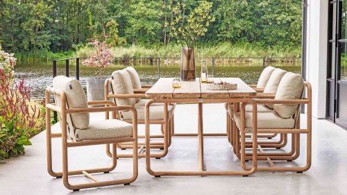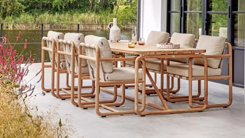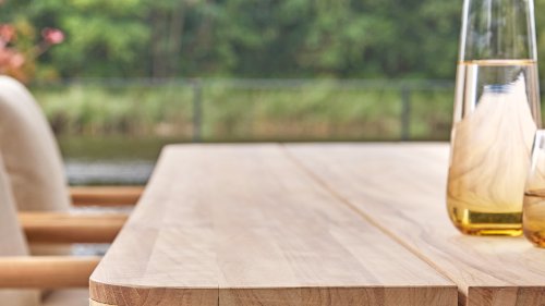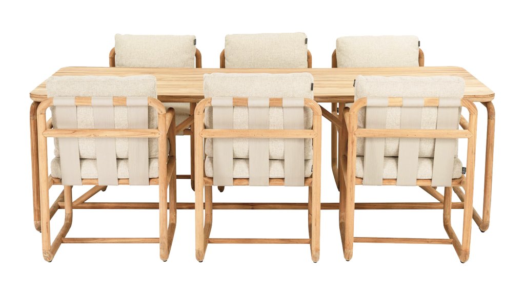 Gartenmöbel aus Teakholz bieten einen atemberaubenden Blick.Teakholz eignet sich besonders gut für den Einsatz im Außenbereich. Es ist resistent gegen Schädlinge und Pilze und widerstandsfähig gegen Sonne, Regen und Schnee. Mit der Zeit entwickelt das Teakholz eine silbergraue Patina. Gartenmöbel aus Teakholz bieten einen atemberaubenden Blick. Darüber hinaus ist es starkes Material und erfordert nur wenig Wartung. Wer die ursprüngliche Farbe des Teakholzes bevorzugt, kann durch regelmäßiges benutzen unser Pflegemittel ganz einfach das Vergrauen des Holzes verhindern.Darüber hinaus können Sie Teak mit grüner Seife reinigen. Durch Temperaturunterschiede und durch den Wechsel von Feuchtigkeit und Trockenheit können kleine Haarrisse entstehen. Es ist üblich, dass Man in dies Unvollkommenheiten findet, diese Unregelmäßigkeiten sind kennzeichnend für dieses Produkt. Diese Unregelmäßigkeiten können nie einen Anlass zu Reklamation, Garantie oder Claim formen. Es betrifft eine Unterschrift von Originalität! Wir gewähren Garantie auf alle Produktions- und Konstruktionsfehler. Die Wirkung von Teakholz ist nicht enthalten. Wenn Sie sich für Teakholz entscheiden, erwarten wir, dass Sie diese Eigenschaften zu schätzen wissen. Eventuell auftretende Haarrisse, Äste im Teakholz und raue Oberflächen im Laufe der Zeit fallen nicht unter unsere Garantie. Diese Eigenschaften verleihen dem Teakholz seinen eigenen Charakter und sind Teil der Optik. Seien Sie vorsichtig mit einem Blumentopf oder einer Vase auf Ihrem Gartentisch aus Teakholz, da dies zu hartnäckigen Kreisen oder Farbunterschieden führen kann.