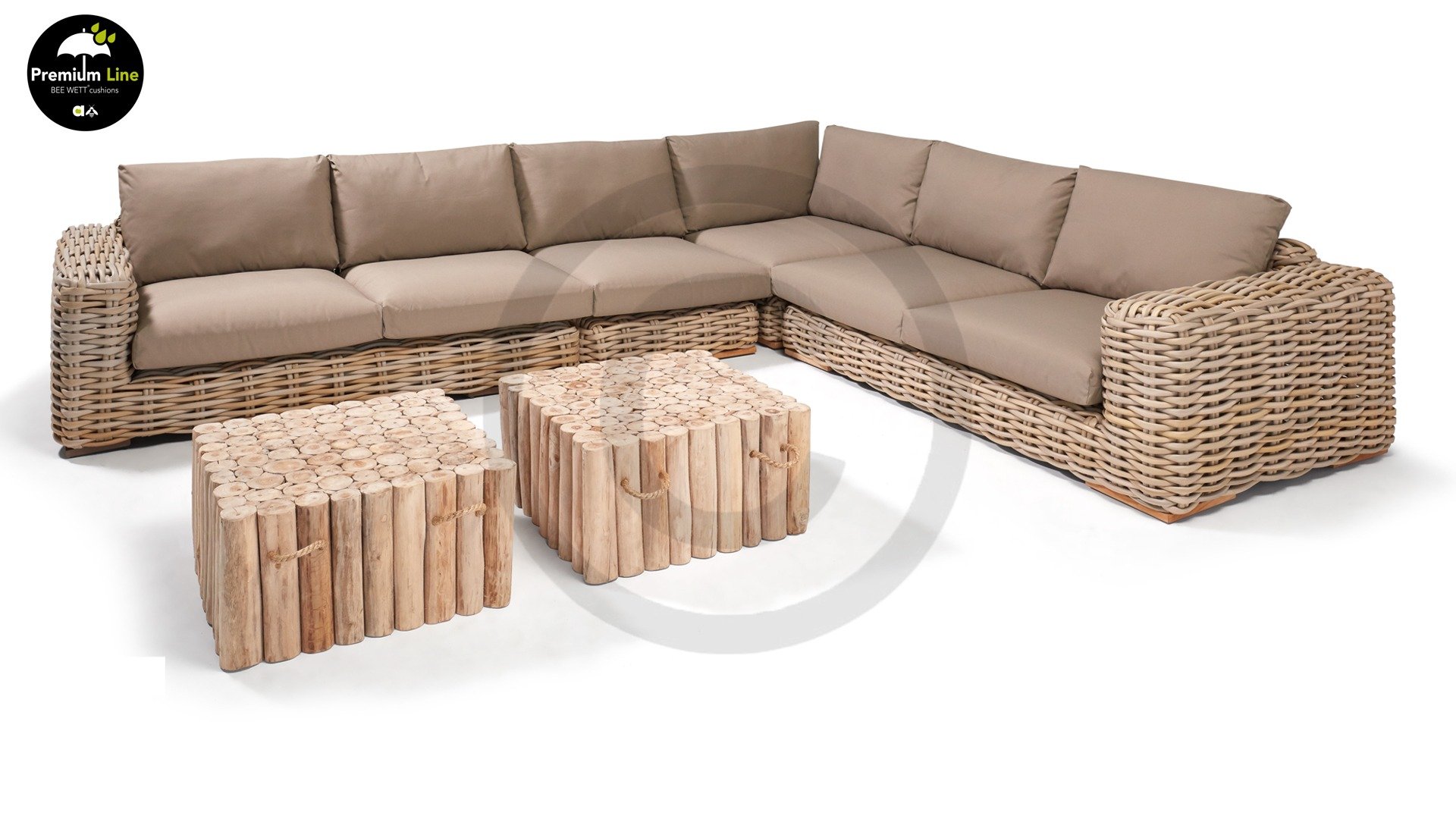 Die Apple Bee FFF Lounge ist großzügig geschnitten und beeindruckend: Die Sitzfläche ist fast einen Meter tief und das Geflecht aus 20 mm dickem Draht ist besonders voluminös! Dieses außergewöhnlich dicke Geflecht erfordert eine spezielle Flechttechnik, die nur von den besten Flechtern beherrscht wird. Diese Profis flechten jeden Strang einzeln von Hand. Dank der Stützkonstruktion lässt sich eine Seite der Lounge-Garnitur verlängern oder als separates Sitzelement nutzen.