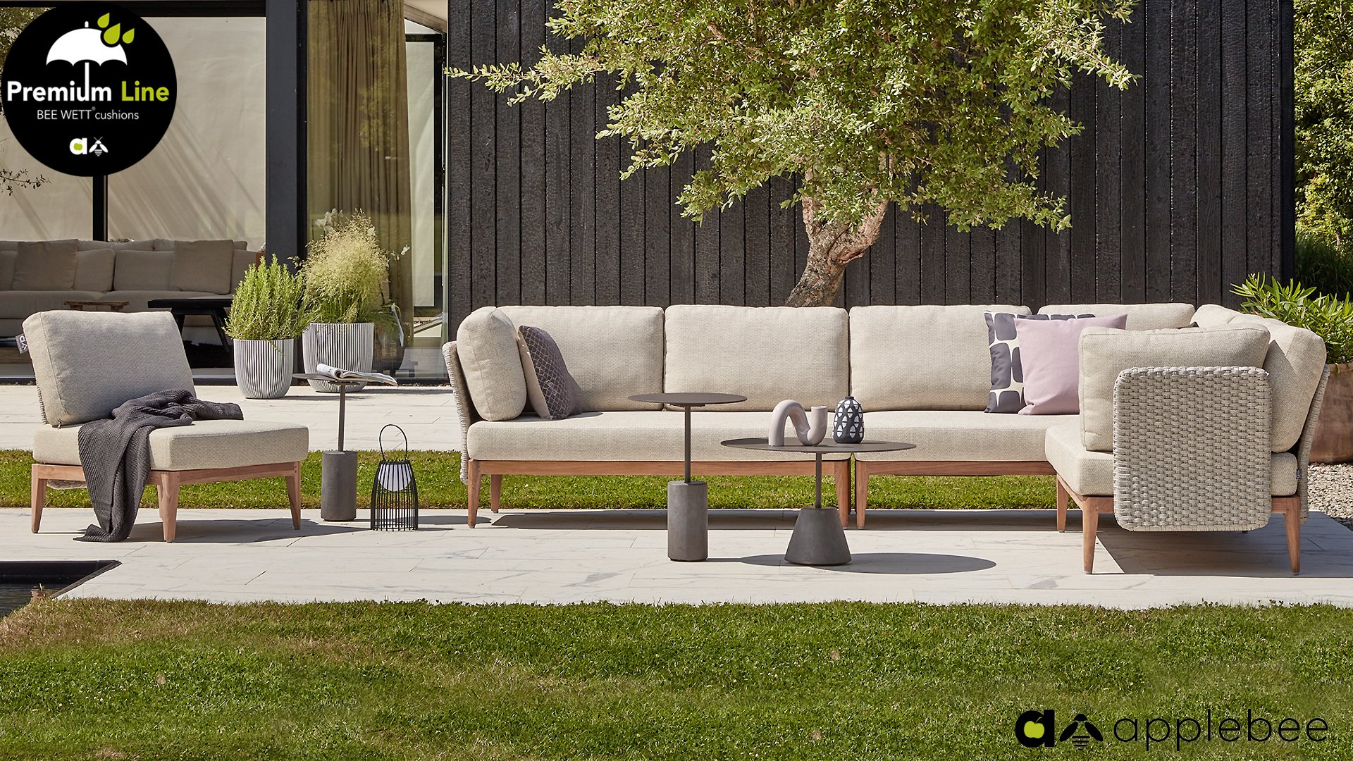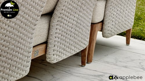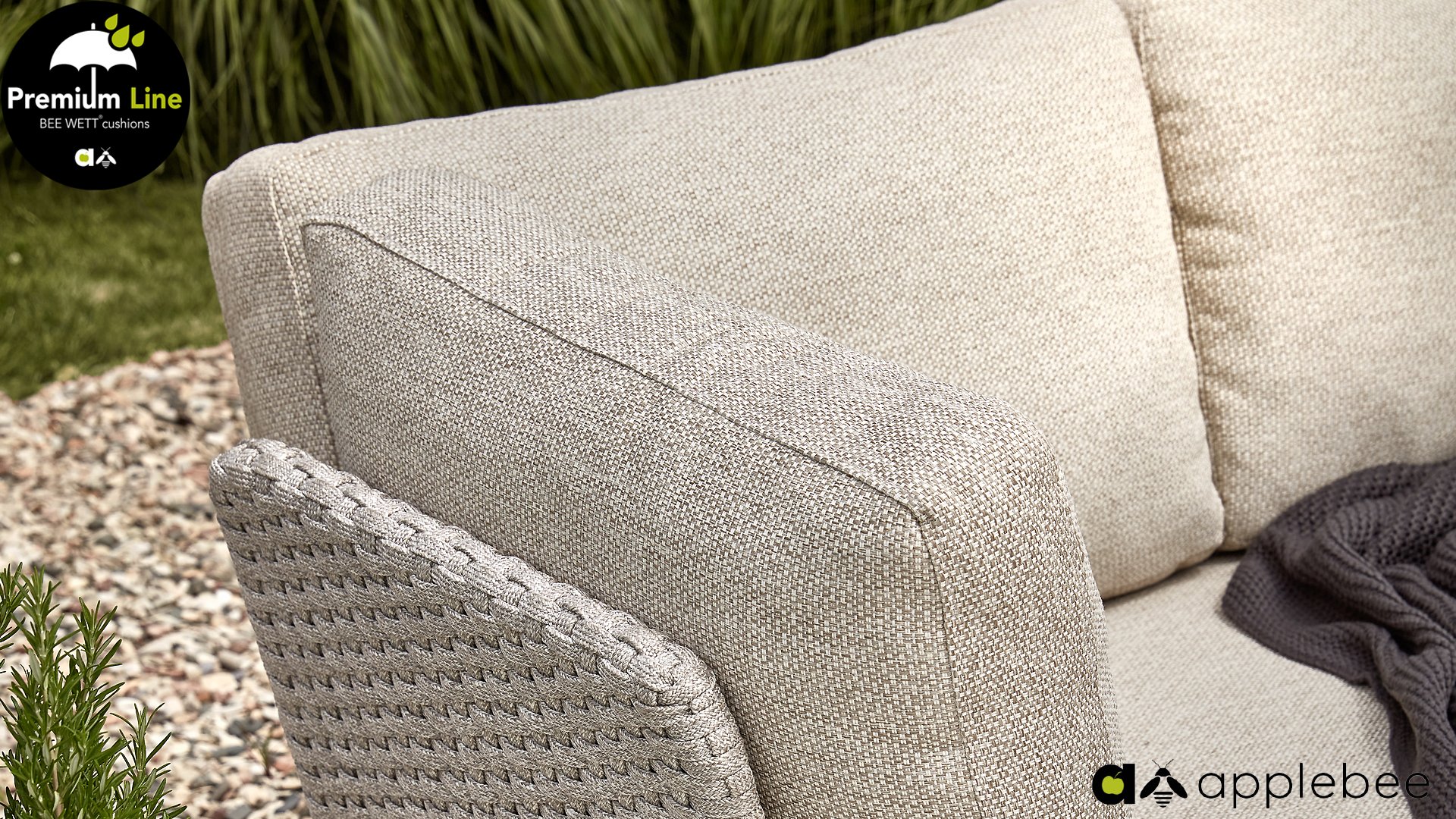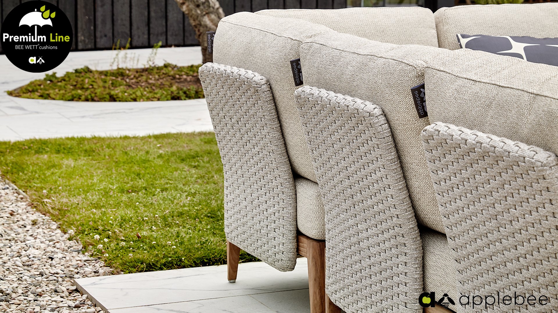 AppleBee Bee Wett sind spezielle wetterfeste Kissen die natürlich draußen liegen bleiben können. Die abnehmbaren Hüllen werden aus den besten möglichen Stoffen hergestellt und sind alle waschbar auf 30°C. Der Stoff ist zusätzlich wasserabstoßend  und garantiert UV-beständig. Eine offenes Gewebe an der Unterseite der Kissen sorgt für eine perfekte Drainage. Der Vorteil, dass die Bee Wett Kissen und Polster unglaublich viel schneller trocknen als vergleichbare andere Kissen. Das Stoff hat eine gute Beständigkeit gegen Verfaulen und Stockflecken und darüber hinaus UV-beständig, weich, komfortabel und feuchtigkeitsabstoßend ist. Die Polster sind ausziehbar und waschbar.