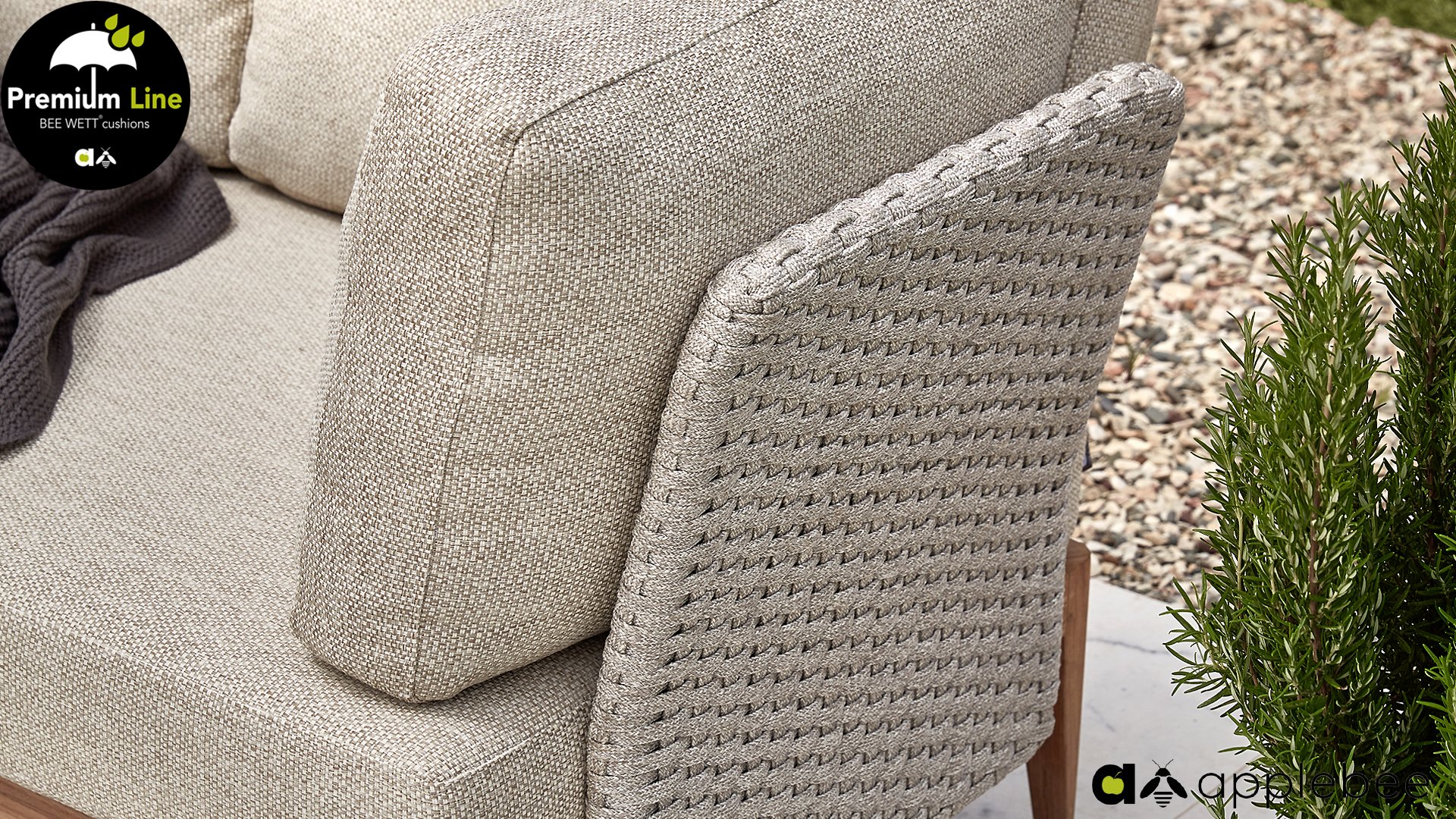 Dieses wunderschöne Material eignet sich perfekt für den Außenbereich, denn AppleBee Rope ist nicht nur eine normale Spitze, an der Sie Ihre Schuhe binden können. AppleBee verwendet ein sehr hochwertiges Faser aus 100% SDP (Slution Dyed Polypropylen). Dieses Material ist extrem stark und hat einen sehr geringen Stretchanteil. Polypropylen ist auf Ölbasis, so dass Schmutz und Verunreinigungen, genau wie unsere Kissen, kaum eindringen können. AppleBee bietet exklusive Designs mit handgeflochtenen Geflechtmustern und -techniken.