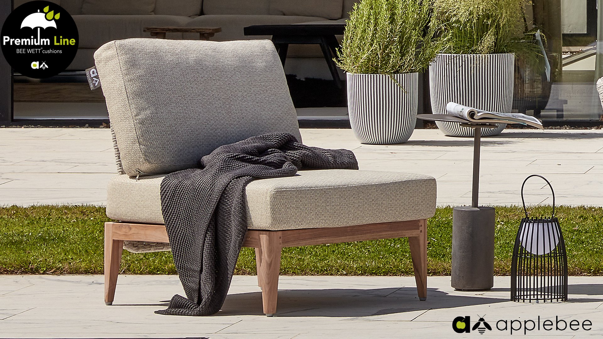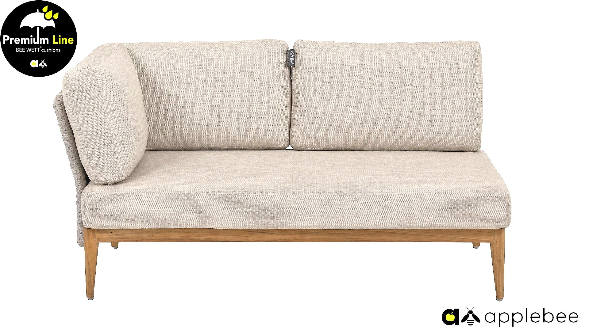 AppleBee Bee Wett sind spezielle wetterfeste Kissen die natürlich draußen liegen bleiben können. Die abnehmbaren Hüllen werden aus den besten möglichen Stoffen hergestellt und sind alle waschbar auf 30°C. Der Stoff ist zusätzlich wasserabstoßend  und garantiert UV-beständig. Eine offenes Gewebe an der Unterseite der Kissen sorgt für eine perfekte Drainage. Der Vorteil, dass die Bee Wett Kissen und Polster unglaublich viel schneller trocknen als vergleichbare andere Kissen. Das Stoff hat eine gute Beständigkeit gegen Verfaulen und Stockflecken und darüber hinaus UV-beständig, weich, komfortabel und feuchtigkeitsabstoßend ist. Die Polster sind ausziehbar und waschbar.
