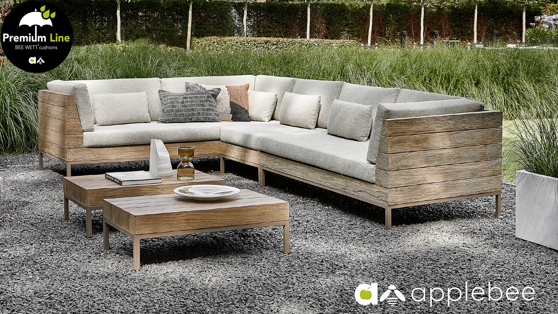 AppleBee Bee Wett sind spezielle wetterfeste Kissen die natürlich draußen liegen bleiben können. Die abnehmbaren Hüllen werden aus den besten möglichen Stoffen hergestellt und sind alle waschbar auf 30°C. Der Stoff ist zusätzlich wasserabstoßend  und garantiert UV-beständig. Eine offenes Gewebe an der Unterseite der Kissen sorgt für eine perfekte Drainage. Der Vorteil, dass die Bee Wett Kissen und Polster unglaublich viel schneller trocknen als vergleichbare andere Kissen. Das Stoff hat eine gute Beständigkeit gegen Verfaulen und Stockflecken und darüber hinaus UV-beständig, weich, komfortabel und feuchtigkeitsabstoßend ist. Die Polster sind ausziehbar und waschbar.