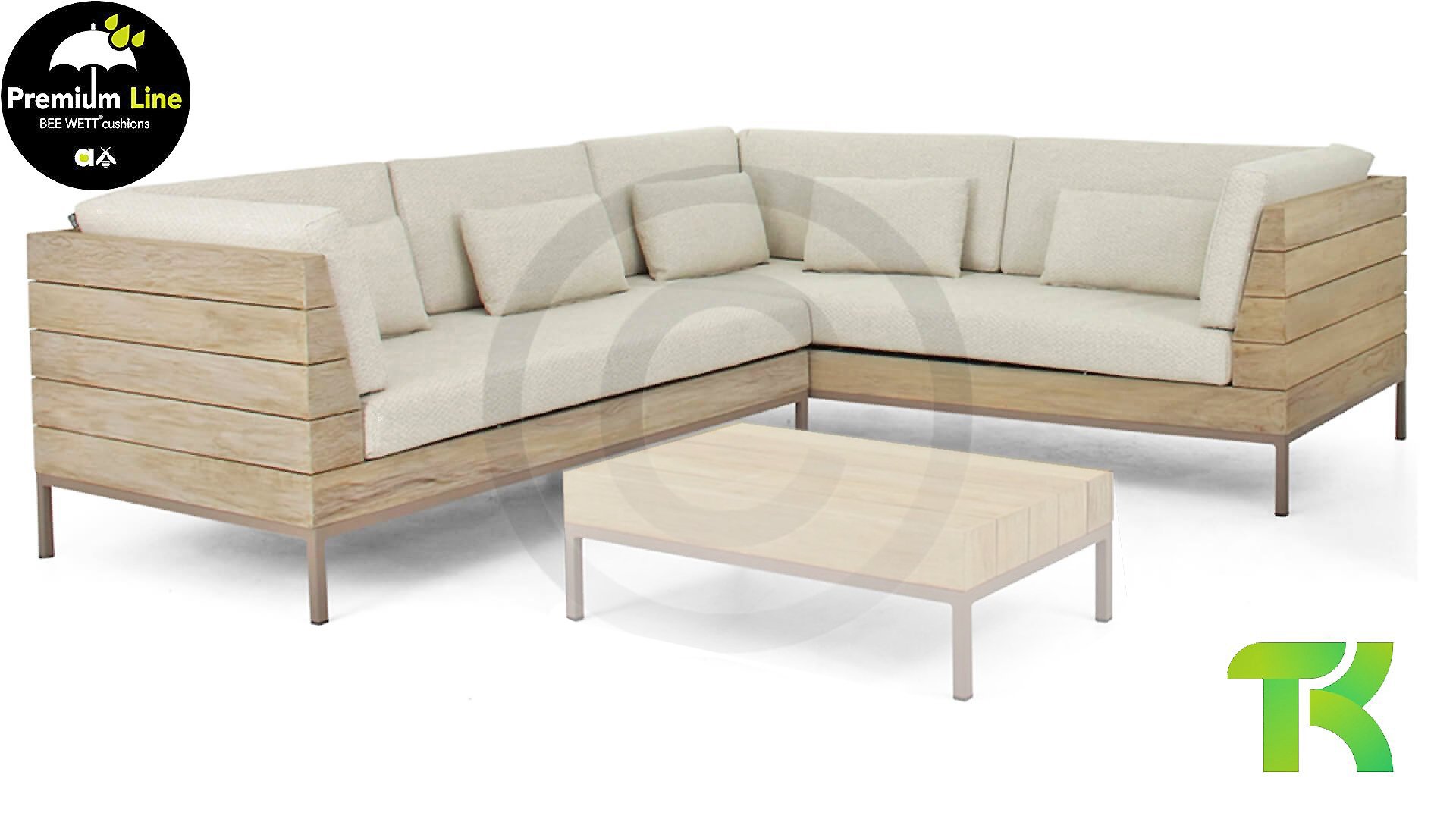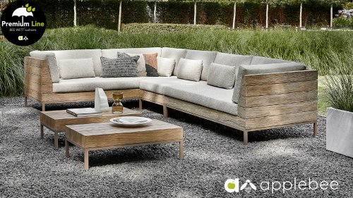 Die Apple Bee Long Island Lounge ist modular und geeignet für große und kleine Konfigurationen. Das Teakholz ist mit einer Coastal-Farbfinish behandelt. Die klaren Linien sind charakteristisch für das Aussehen dieses schönen Sets. Der grob gewebte Stoff verleiht dem Set ein luxuriöses Aussehen und bringt eine Strandatmosphäre in Ihren Garten!