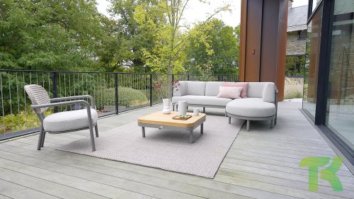 Wenn Sie ein modernes, zeitgemäßes Lounge-Set mögen, aber keine Kompromisse bei der Individualität eingehen möchten ... sehen Sie sich hier das Maui an! Ein wunderschönes Aluminium-Rundrohrgestell, pulverbeschichtet in einem warmen Taupe-Farbton, sorgt in Kombination mit den aufregenden Ropemustern im geschmackvollen Farbton Smoke Grey für ein harmonisches Farb- und Formspiel.