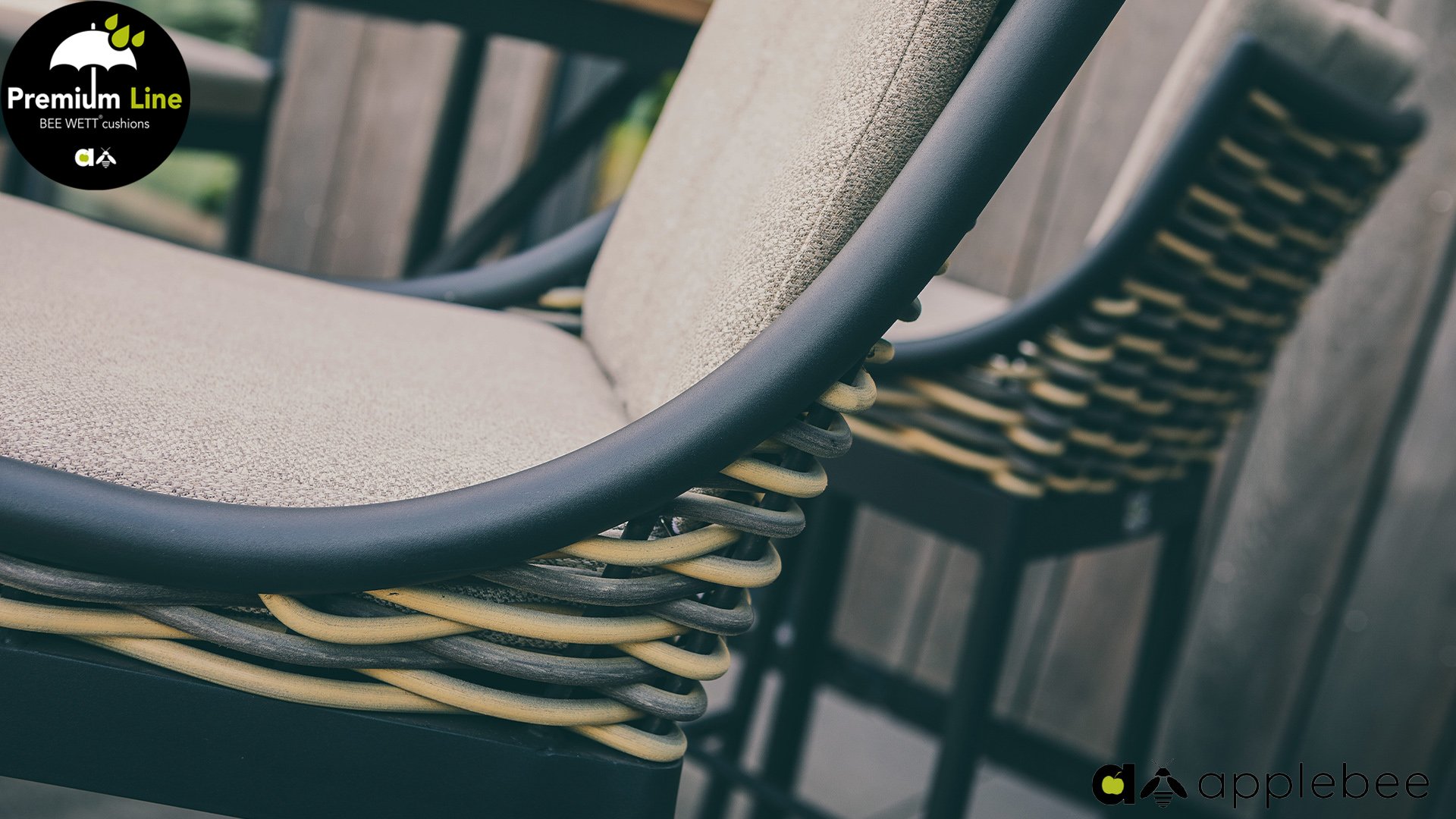 AppleBee Bee Wett sind spezielle wetterfeste Kissen die natürlich draußen liegen bleiben können. Die abnehmbaren Hüllen werden aus den besten möglichen Stoffen hergestellt und sind alle waschbar auf 30°C. Der Stoff ist zusätzlich wasserabstoßend und garantiert UV-beständig. Eine offenes Gewebe an der Unterseite der Kissen sorgt für eine perfekte Drainage. Der Vorteil, dass die Bee Wett Kissen und Polster unglaublich viel schneller trocknen als vergleichbare andere Kissen. Das Stoff hat eine gute Beständigkeit gegen Verfaulen und Stockflecken und darüber hinaus UV-beständig, weich, komfortabel und feuchtigkeitsabstoßend ist. Die Polster sind ausziehbar und waschbar.