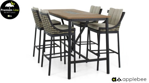 Die Milou-Barset ist von der Marke Apple Bee. Der Gartentisch hat ein modernes Aussehen, da er aus Weidenflechtwerk besteht. Der Apple Bee Milou Barhocker hat ein starkes Gestell, das in Schwarz pulverbeschichtet ist. Das Gestell ist mit Weidenflechtwerk in der Farbe Willow veredelt. Das Flechtwerk ist aus Allwettermaterial gefertigt und kann das ganze Jahr über draußen stehen.