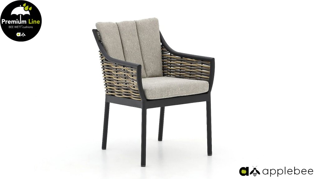 Apple Bee zeichnet sich durch die Verwendung des speziellen Biculair®-Geflechts aus, das ursprünglich für den professionellen Einsatz im Gastgewerbe entwickelt wurde. Dieses Biculair®-Geflecht ist eine naturgetreue und nachhaltige Alternative zu Rattan. Die äußerst strapazierfähige synthetische Rattanfaser (HDPE) ist absolut wetterfest, farbecht, recycelbar und somit eine umweltfreundliche Wahl. Aussehen und Funktionalität der Möbel bleiben von den europäischen Witterungsbedingungen unbeeinträchtigt, und die Farben behalten ihre natürliche Leuchtkraft. Die überlegene Qualität dieses Geflechts, bestätigt von der Niederländischen Organisation für Angewandte Naturwissenschaftliche Forschung (TNO), zeigt sich deutlich im Vergleich zu anderen vergleichbaren Materialien.