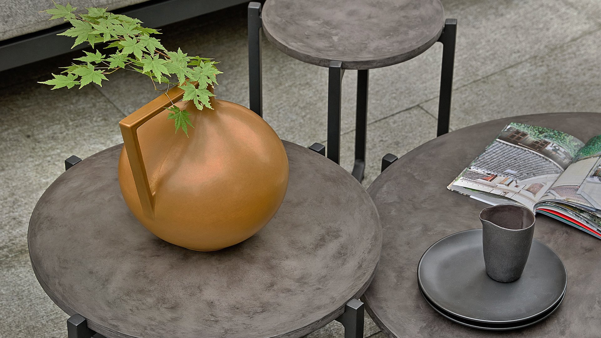 Dieser stilvolle Beistelltisch Soul ist in drei verschiedenen Größen erhältlich. Seine abgerundeten, eleganten Formen verleihen ihm eine lebendige Ausstrahlung. Die verwendeten Materialien sind wasserfest, pflegeleicht und daher ideal für den Außenbereich geeignet. Und das ist noch nicht alles … Die Tischplatte besteht aus Leichtbeton, und auch das Gestell ist federleicht. Dadurch lassen sich die Tische mühelos bewegen.