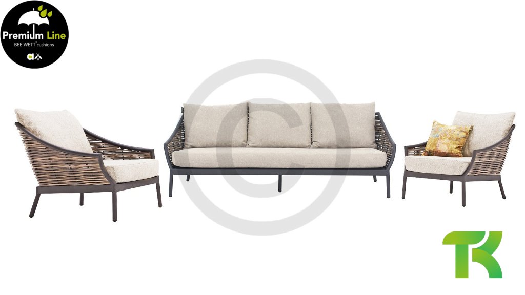 | Materialien Loungegruppe | Pulverbeschichtet Aluminium/Stahl, Geflecht |