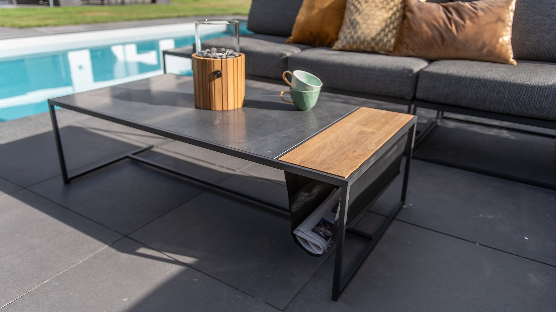 Die 4Seasons Atlas Loungetische sind perfekt für alle, die minimalistisches Design mögen. Dünne Edelstahlrahmen und schöne Keramiktischplatten bilden eine zeitlose Kombination. Ist Ihnen das Zeitschriftenhalter-Gimmick schon aufgefallen? Ziemlich cool oder?