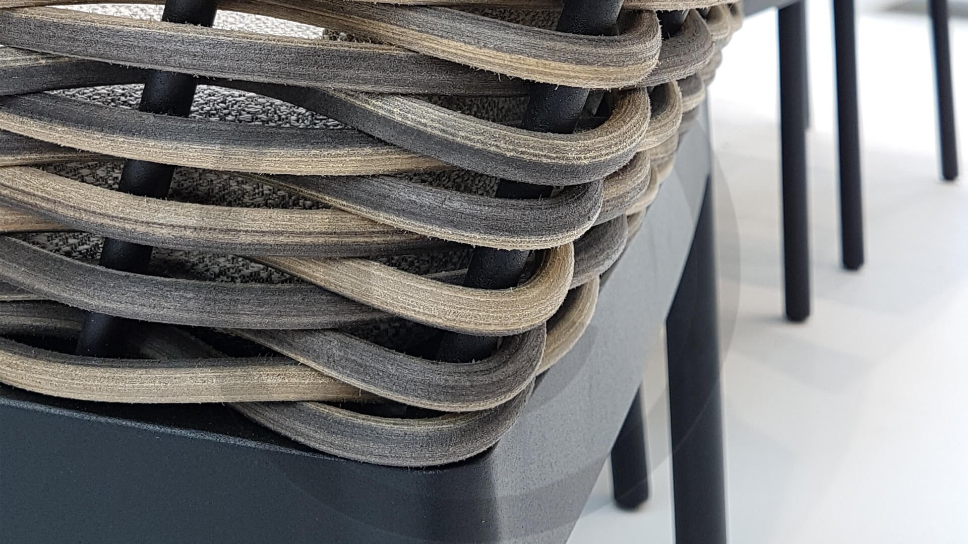 Apple Bee zeichnet sich durch die Verwendung des speziellen Biculair®-Geflechts aus, das ursprünglich für den professionellen Einsatz im Gastgewerbe entwickelt wurde. Dieses Biculair®-Geflecht ist eine naturgetreue und nachhaltige Alternative zu Rattan. Die äußerst strapazierfähige synthetische Rattanfaser (HDPE) ist absolut wetterfest, farbecht, recycelbar und somit eine umweltfreundliche Wahl. Aussehen und Funktionalität der Möbel bleiben von den europäischen Witterungsbedingungen unbeeinträchtigt, und die Farben behalten ihre natürliche Leuchtkraft. Die überlegene Qualität dieses Geflechts, bestätigt von der Niederländischen Organisation für Angewandte Naturwissenschaftliche Forschung (TNO), zeigt sich deutlich im Vergleich zu anderen vergleichbaren Materialien.