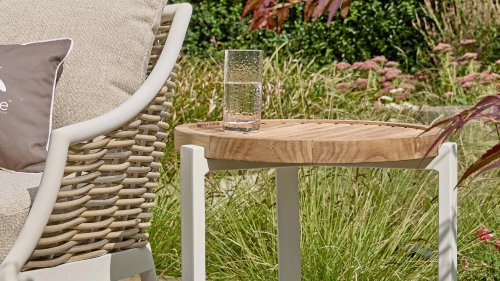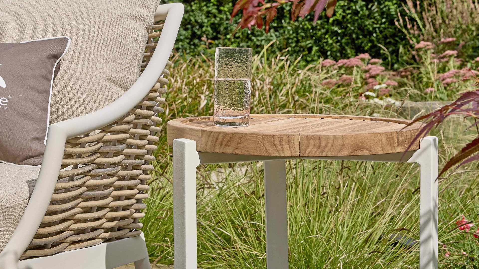 1 x Apple Bee Monaco Beistelltisch Alumimium-Teak Ø45xH47cm