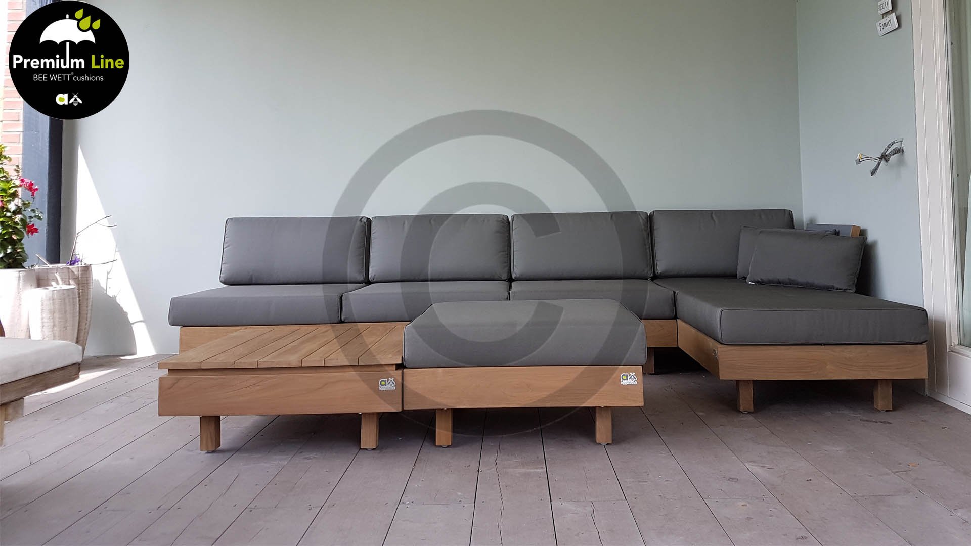 Das Applebee Lounge-Set Module X besteht aus extrem starkem Teakholz, das mit einem sogenannten neuen Antique Finish versehen ist, das Ihren Möbeln ein robustus Aussehen verleiht. Die Sitz- und Rückenkissen in dieser Reihe ist mit der BEE WETT®-Technologie, die perfekte Ableitung von Feuchtigkeit gewährleistet.