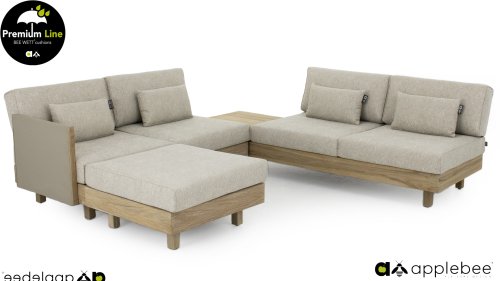 Das Applebee Lounge-Set Module X besteht aus extrem starkem Teakholz, das mit einem sogenannten neuen Coastal Finish versehen ist, das Ihren Möbeln ein frisches Aussehen verleiht. Die Sitz- und Rückenkissen in dieser Reihe ist mit der BEE WETT®-Technologie, die perfekte Ableitung von Feuchtigkeit gewährleistet.