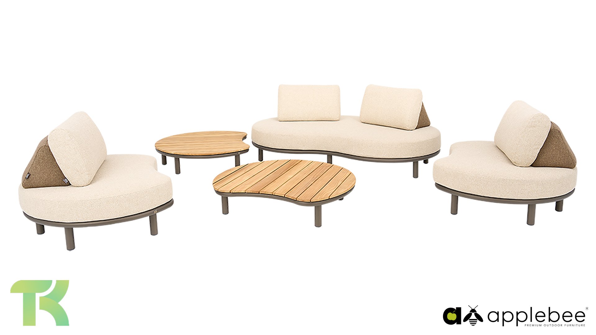 Das Apple Bee Moon Island Lounge-Set bricht mit den traditionellen, geradlinigen Formen von Gartenmöbeln. Die weichen, abgerundeten Konturen verleihen Ihrer Terrasse sofort ein modernes und einladendes Ambiente. Das Besondere an diesem Set ist seine absolute Bewegungsfreiheit: Die Rückenlehnen sind nicht am Gestell befestigt. Dank der beschwerten Rückenlehne bleiben die stilvollen, braunen Rückenlehnen fest an ihrem Platz und verrutschen nicht. So können Sie Ihre bevorzugte Sitzposition ganz individuell gestalten: direkt gegenüber für eine angenehme Unterhaltung oder quer über das Sofa für pure Entspannung.
