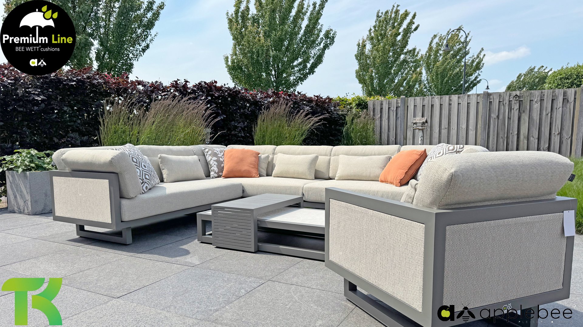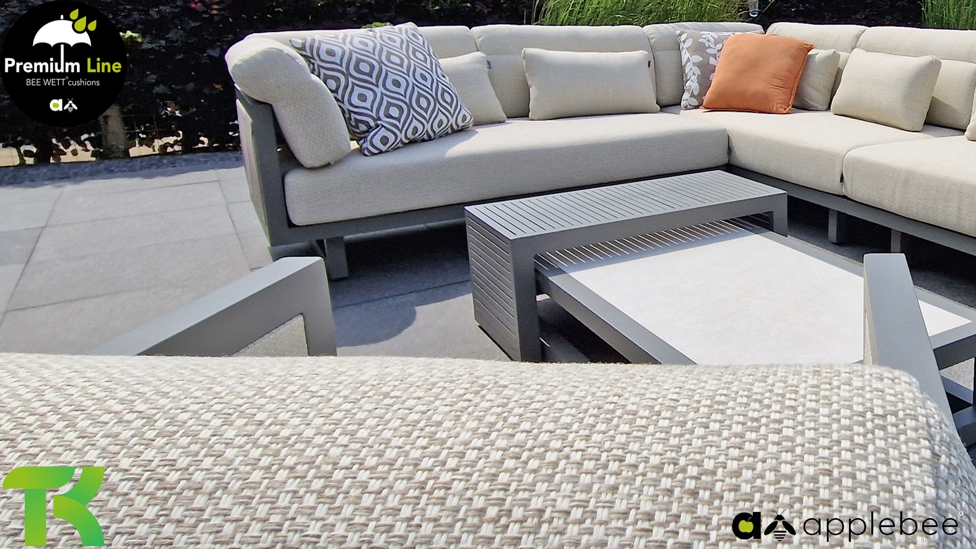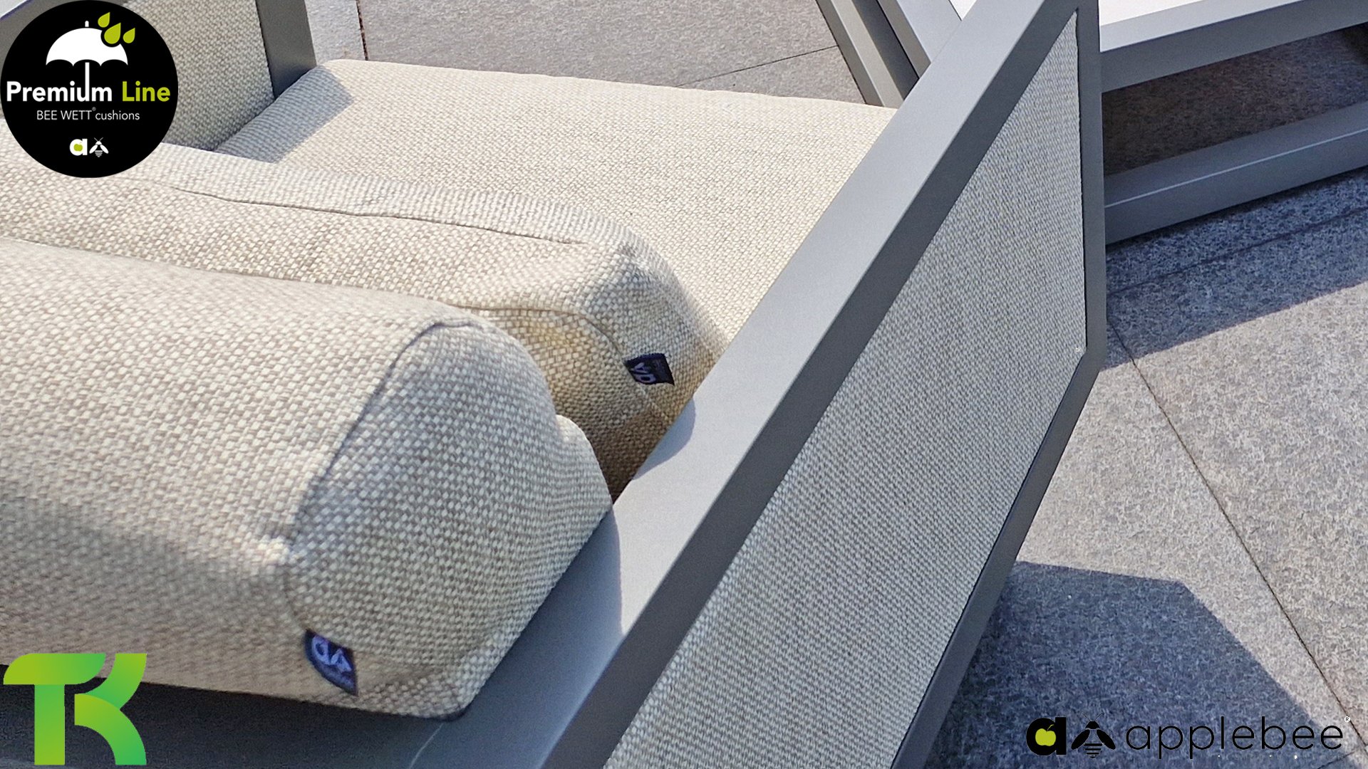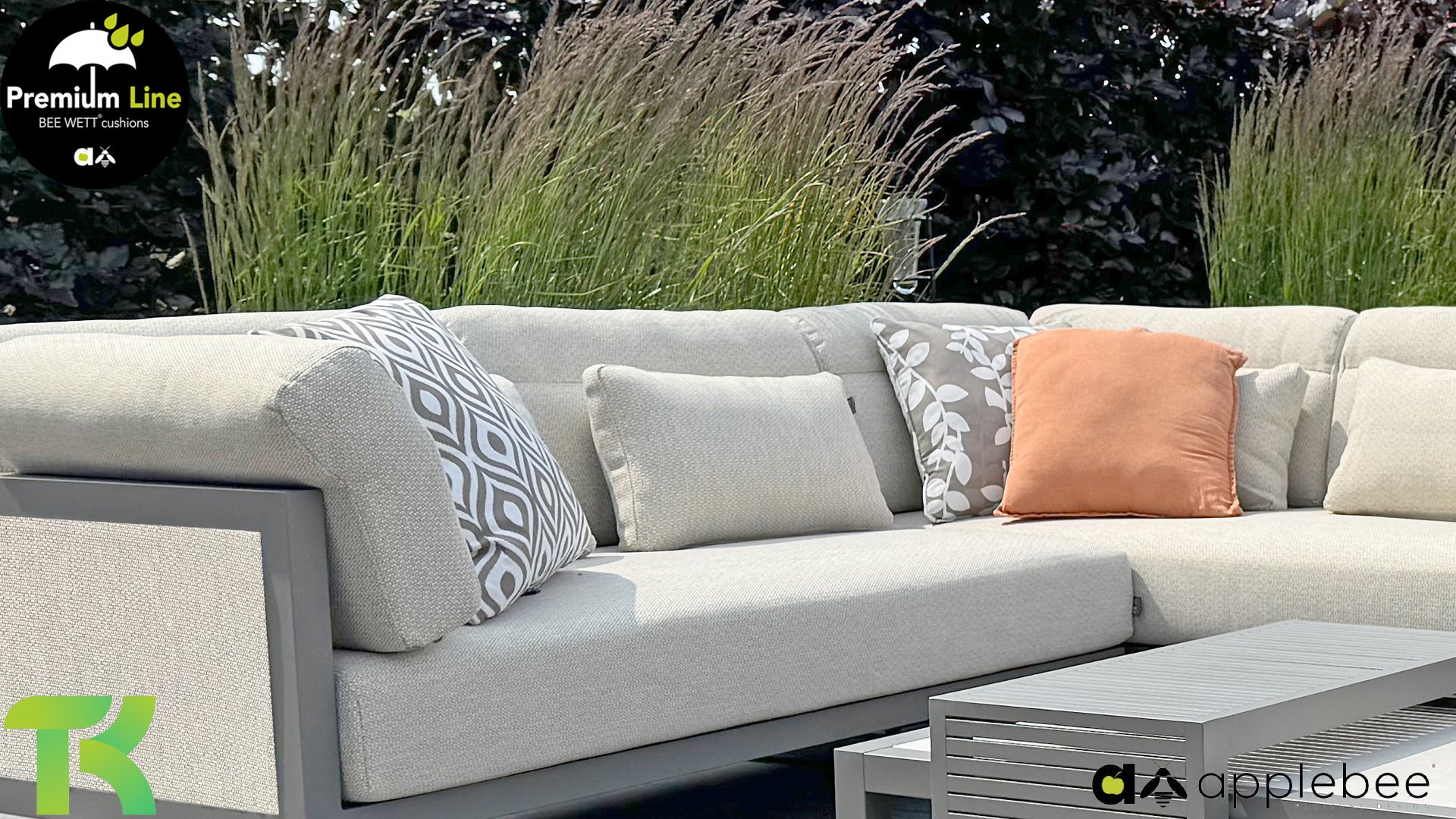 AppleBee Bee Wett sind spezielle wetterfeste Kissen die natürlich draußen liegen bleiben können. Die abnehmbaren Hüllen werden aus den besten möglichen Stoffen hergestellt und sind alle waschbar auf 30°C. Der Stoff ist zusätzlich wasserabstoßend  und garantiert UV-beständig. Eine offenes Gewebe an der Unterseite der Kissen sorgt für eine perfekte Drainage. Der Vorteil, dass die Bee Wett Kissen und Polster unglaublich viel schneller trocknen als vergleichbare andere Kissen. Das Stoff hat eine gute Beständigkeit gegen Verfaulen und Stockflecken und darüber hinaus UV-beständig, weich, komfortabel und feuchtigkeitsabstoßend ist. Die Polster sind ausziehbar und waschbar.