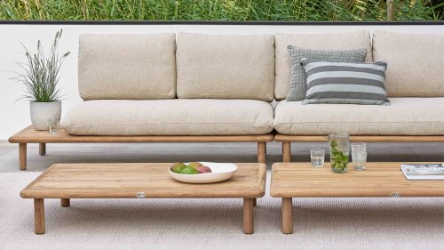 Die Apple Bee Sling Lounge ist eine großzügige Teakholz-Loungeset mit einem hohen Sitzkomfort durch extra dicke Kissen. Ideal für das Genießen lauer Sommerabende. Die Sling Loungeset von Apple Bee ist eine großzügige Teakholz-Loungeset mit einem hohen Sitzkomfort durch extra dicke Kissen. Ideal für das Genießen lauer Sommerabende.