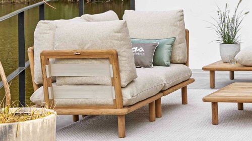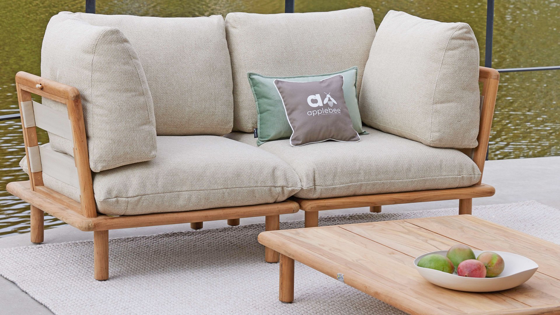 Die Apple Bee Sling Lounge ist eine großzügige Teakholz-Loungeset mit einem hohen Sitzkomfort durch extra dicke Kissen. Ideal für das Genießen lauer Sommerabende. Die Sling Loungeset von Apple Bee ist eine großzügige Teakholz-Loungeset mit einem hohen Sitzkomfort durch extra dicke Kissen. Ideal für das Genießen lauer Sommerabende.