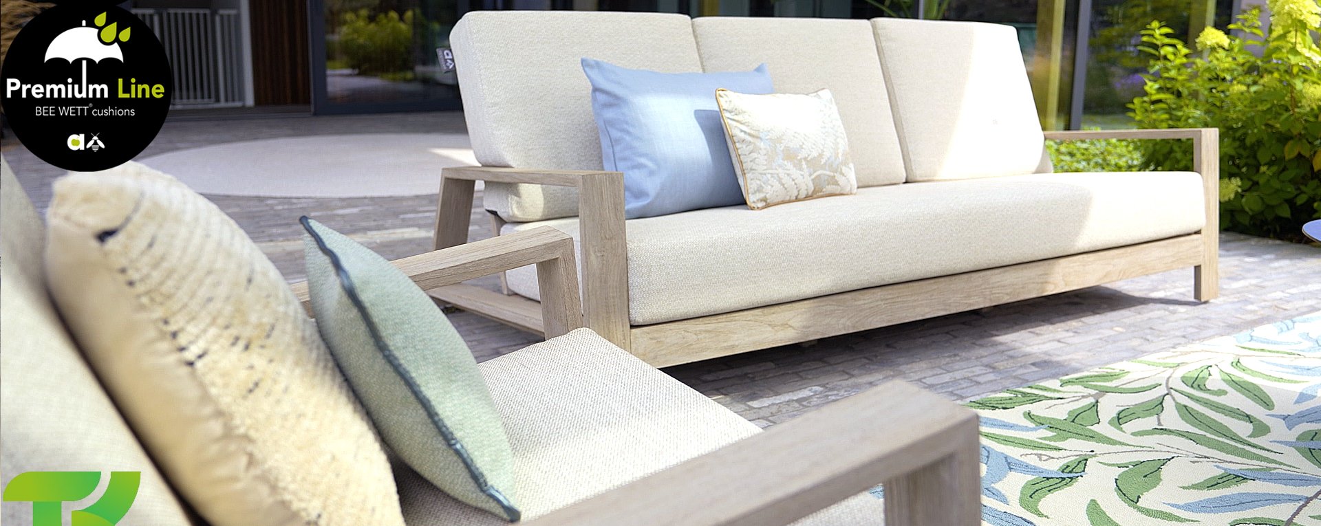 Die Apple Bee Spring Teak-Kollektion besticht durch ihr minimalistisches und klares Design, das dank seiner einzigartigen Formgebung dennoch beeindruckt. Elegante diagonale Linien, handgefertigtes Teakholz in Küstenoptik und weiche, bequeme Kissen mit sandfarbenem Bezug zeichnen dieses Set aus. Gefertigt aus hochwertigem Teakholz, ist es auch ohne Kissen ein wahrer Augenschmaus in Ihrem Garten. Ein harmonisches Gesamtbild! Mit ein paar schönen Dekokissen nach Ihrem Geschmack schaffen Sie im Handumdrehen Ihre ganz persönliche Wohlfühloase in der Sonne.