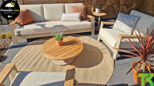 Gartenmöbel aus Teakholz bieten einen atemberaubenden Blick.Teakholz eignet sich besonders gut für den Einsatz im Außenbereich. Es ist resistent gegen Schädlinge und Pilze und widerstandsfähig gegen Sonne, Regen und Schnee. Mit der Zeit entwickelt das Teakholz eine silbergraue Patina. Gartenmöbel aus Teakholz bieten einen atemberaubenden Blick. Darüber hinaus ist es starkes Material und erfordert nur wenig Wartung. Wer die ursprüngliche Farbe des Teakholzes bevorzugt, kann durch regelmäßiges benutzen unser Pflegemittel ganz einfach das Vergrauen des Holzes verhindern.Darüber hinaus können Sie Teak mit grüner Seife reinigen. Durch Temperaturunterschiede und durch den Wechsel von Feuchtigkeit und Trockenheit können kleine Haarrisse entstehen. Es ist üblich, dass Man in dies Unvollkommenheiten findet, diese Unregelmäßigkeiten sind kennzeichnend für dieses Produkt. Diese Unregelmäßigkeiten können nie einen Anlass zu Reklamation, Garantie oder Claim formen. Es betrifft eine Unterschrift von Originalität!  Wir gewähren Garantie auf alle Produktions- und Konstruktionsfehler. Die Wirkung von Teakholz ist nicht enthalten. Wenn Sie sich für Teakholz entscheiden, erwarten wir, dass Sie diese Eigenschaften zu schätzen wissen. Eventuell auftretende Haarrisse, Äste im Teakholz und raue Oberflächen im Laufe der Zeit fallen nicht unter unsere Garantie. Diese Eigenschaften verleihen dem Teakholz seinen eigenen Charakter und sind Teil der Optik. Seien Sie vorsichtig mit einem Blumentopf oder einer Vase auf Ihrem Gartentisch aus Teakholz, da dies zu hartnäckigen Kreisen oder Farbunterschieden führen kann.