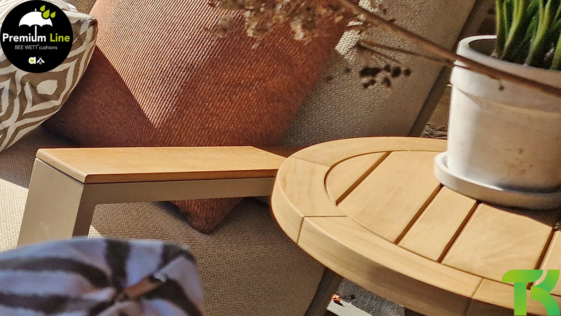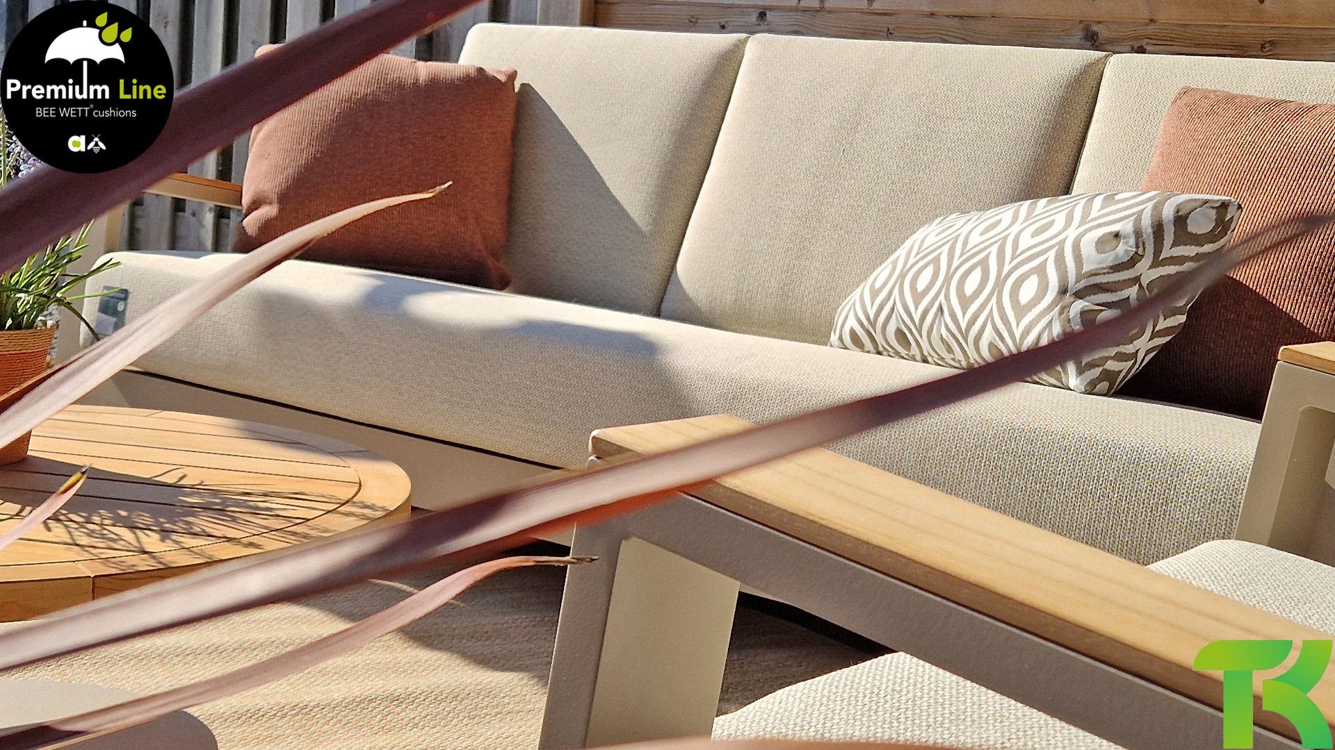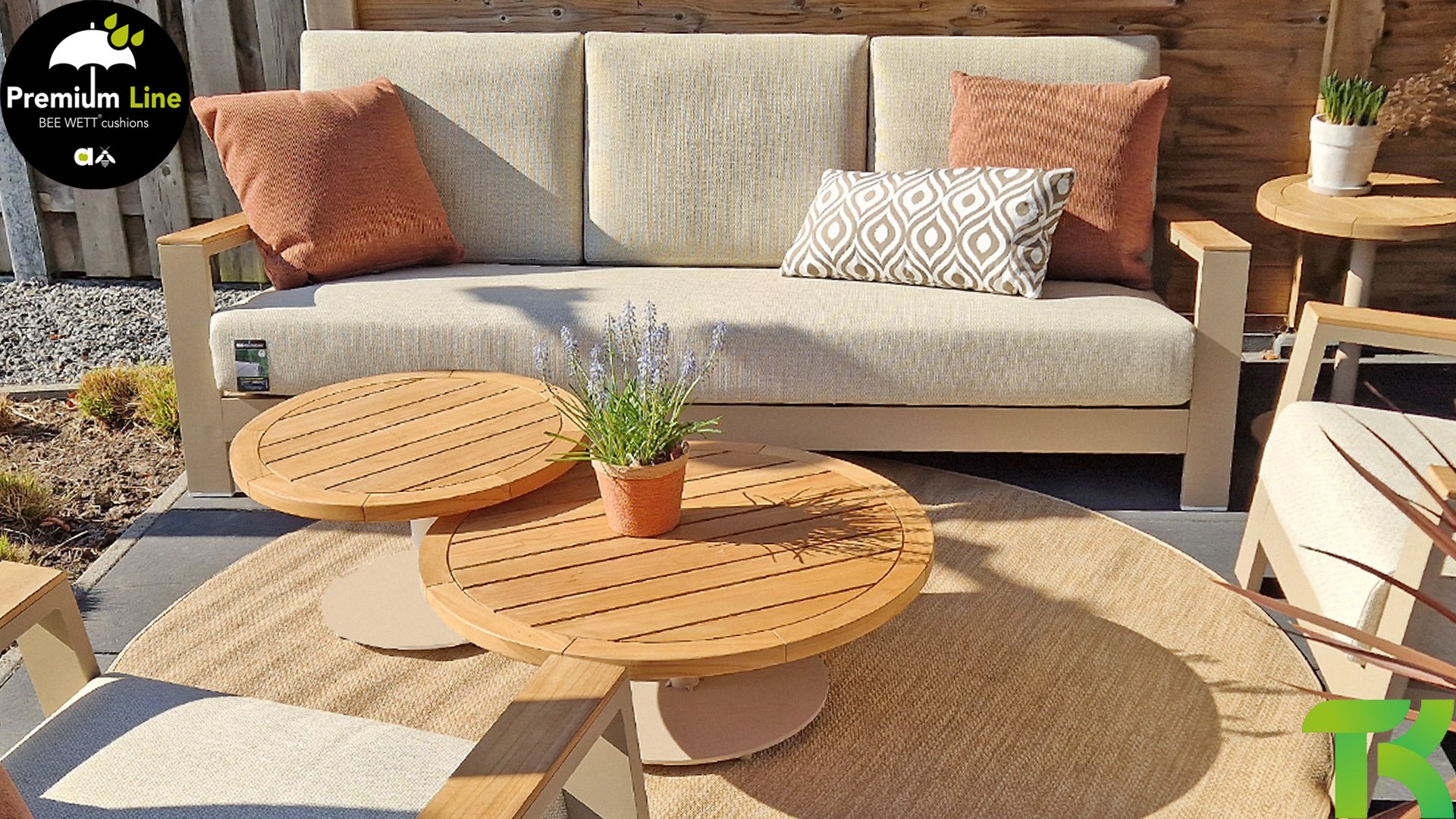 Die Apple Bee Spring Aluminium Latte Kollektion ist minimalistisch und sauber, aber fällt dennoch durch eine besondere Gestaltung auf. Ein strenges diagonales Linienmuster, sorgfältig verarbeitetes Aluminium, pulverbeschichtet in einer schönen Latte Farbe und weiche, komfortable Kissen in sandfarbenem Stoff. Ein Hauch von Teak auf der Lehne rundet das Set ab und verleiht ihm das gewisse Extra-Detail. Mit einer Dekoration in Ihrem eigenen Stil können Sie im Handumdrehen Ihren eigenen Dreh an diesem 'Sonnennest' geben.