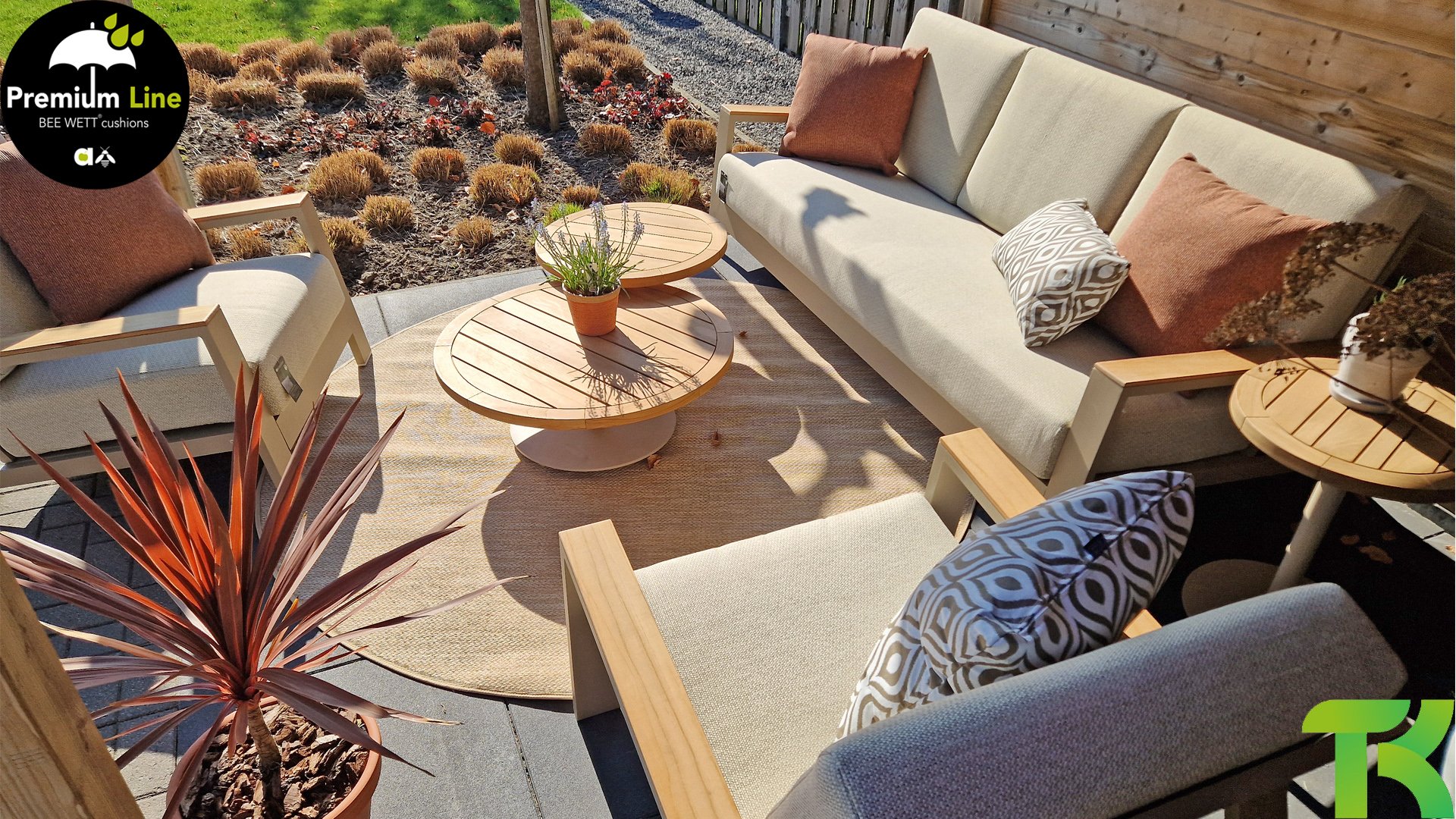 AppleBee Bee Wett sind spezielle wetterfeste Kissen die natürlich draußen liegen bleiben können. Die abnehmbaren Hüllen werden aus den besten möglichen Stoffen hergestellt und sind alle waschbar auf 30°C. Der Stoff ist zusätzlich wasserabstoßend und garantiert UV-beständig. Eine offenes Gewebe an der Unterseite der Kissen sorgt für eine perfekte Drainage. Der Vorteil, dass die Bee Wett Kissen und Polster unglaublich viel schneller trocknen als vergleichbare andere Kissen. Das Stoff hat eine gute Beständigkeit gegen Verfaulen und Stockflecken und darüber hinaus UV-beständig, weich, komfortabel und feuchtigkeitsabstoßend ist. Die Polster sind ausziehbar und waschbar.