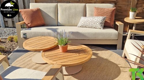 | Materialien Loungegruppe | Teak, Pulverbeschichtet Aluminium/Stahl |