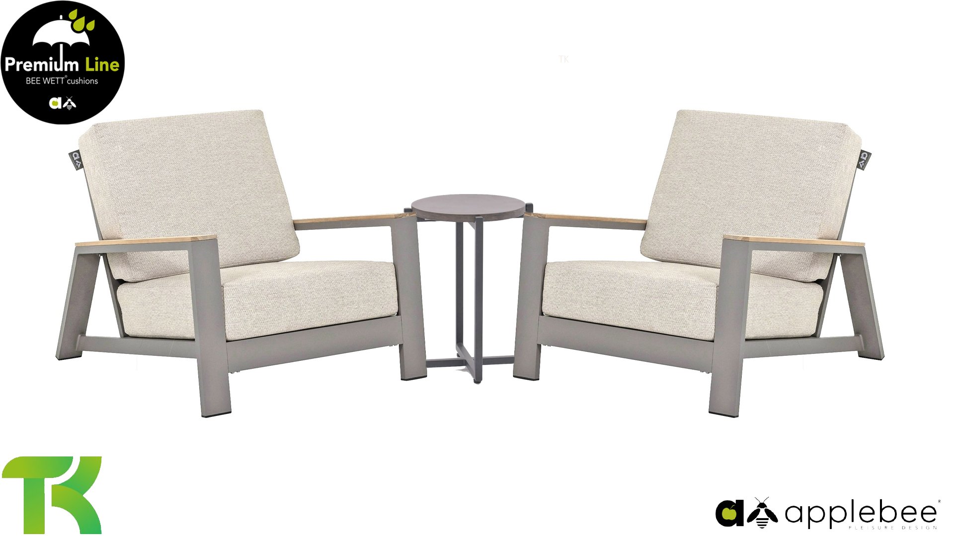2 x Apple Bee Spring Aluminium Taupe Lounge Sessel