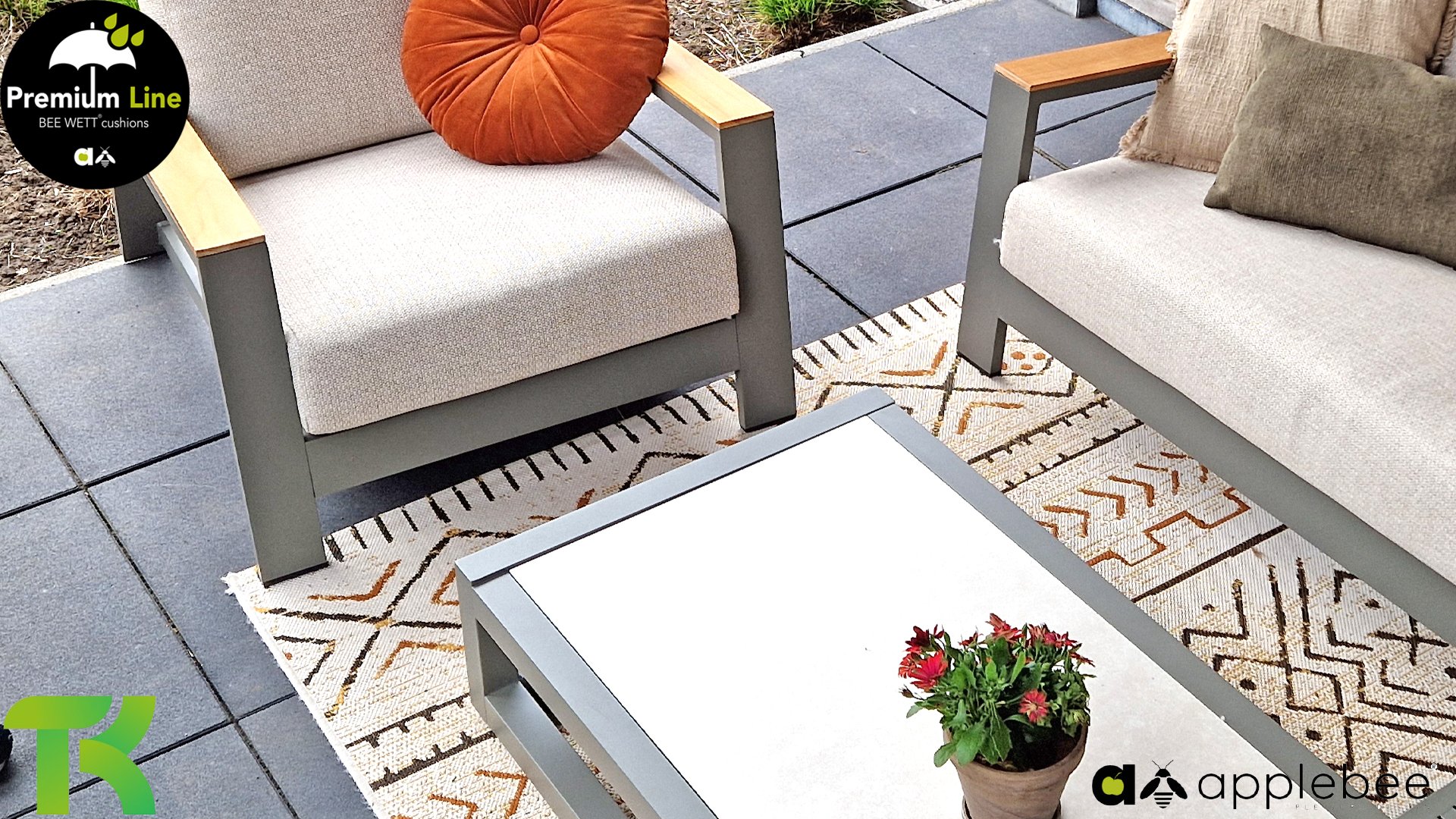 AppleBee Bee Wett sind spezielle wetterfeste Kissen die natürlich draußen liegen bleiben können. Die abnehmbaren Hüllen werden aus den besten möglichen Stoffen hergestellt und sind alle waschbar auf 30°C. Der Stoff ist zusätzlich wasserabstoßend und garantiert UV-beständig. Eine offenes Gewebe an der Unterseite der Kissen sorgt für eine perfekte Drainage. Der Vorteil, dass die Bee Wett Kissen und Polster unglaublich viel schneller trocknen als vergleichbare andere Kissen. Das Stoff hat eine gute Beständigkeit gegen Verfaulen und Stockflecken und darüber hinaus UV-beständig, weich, komfortabel und feuchtigkeitsabstoßend ist. Die Polster sind ausziehbar und waschbar.