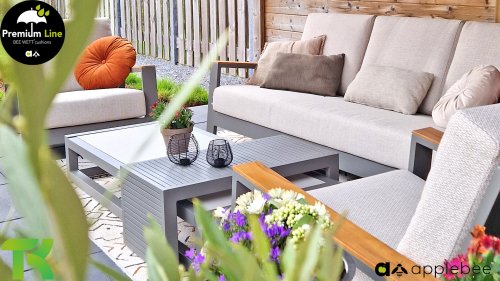 | Materialien Loungegruppe | Teak, Pulverbeschichtet Aluminium/Stahl |