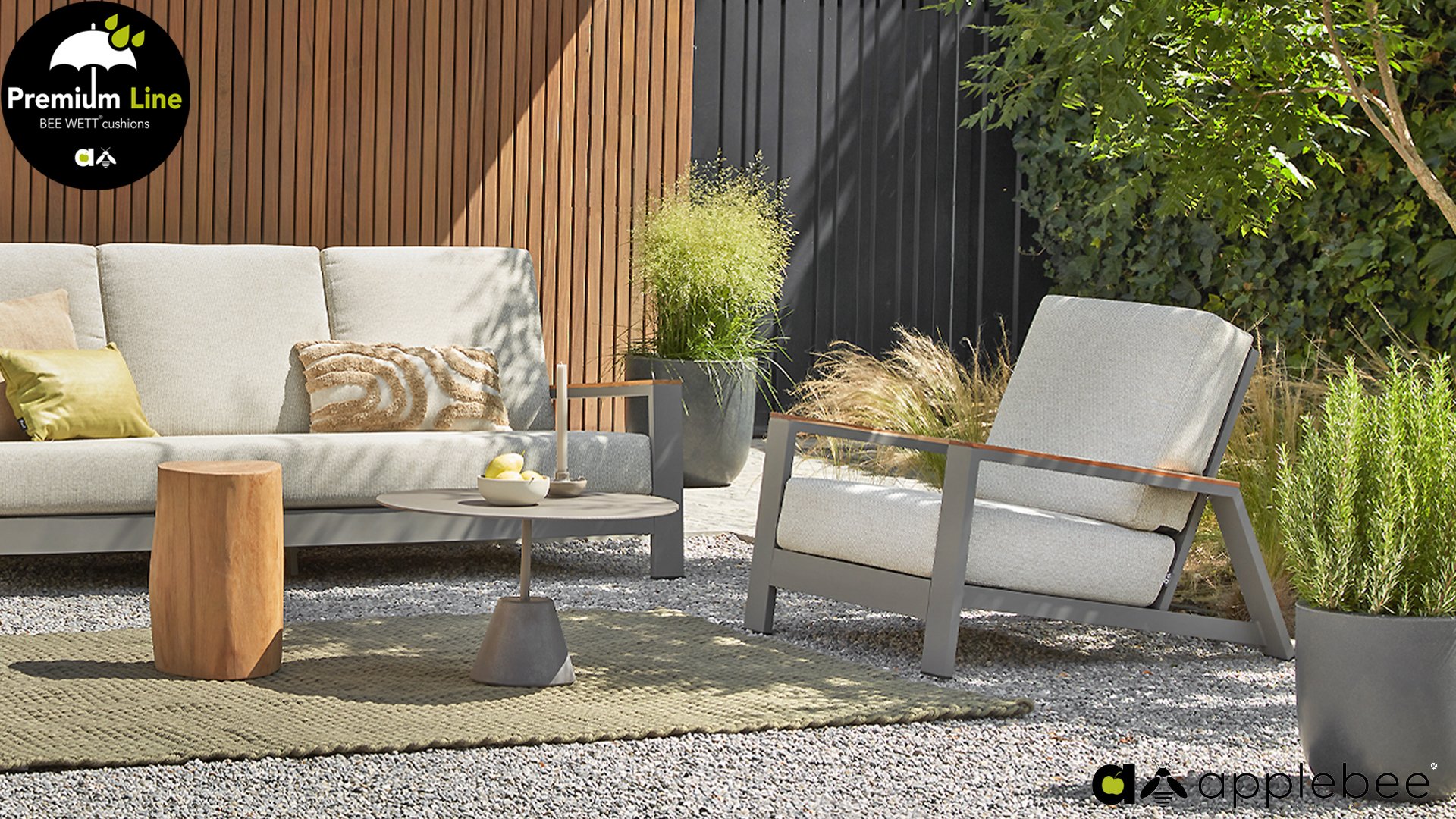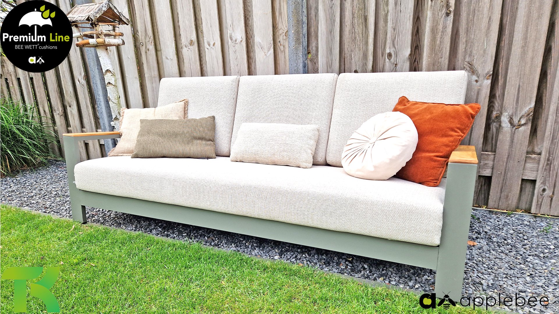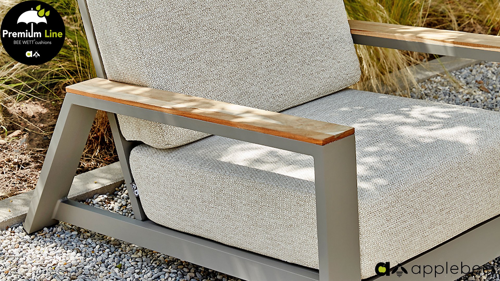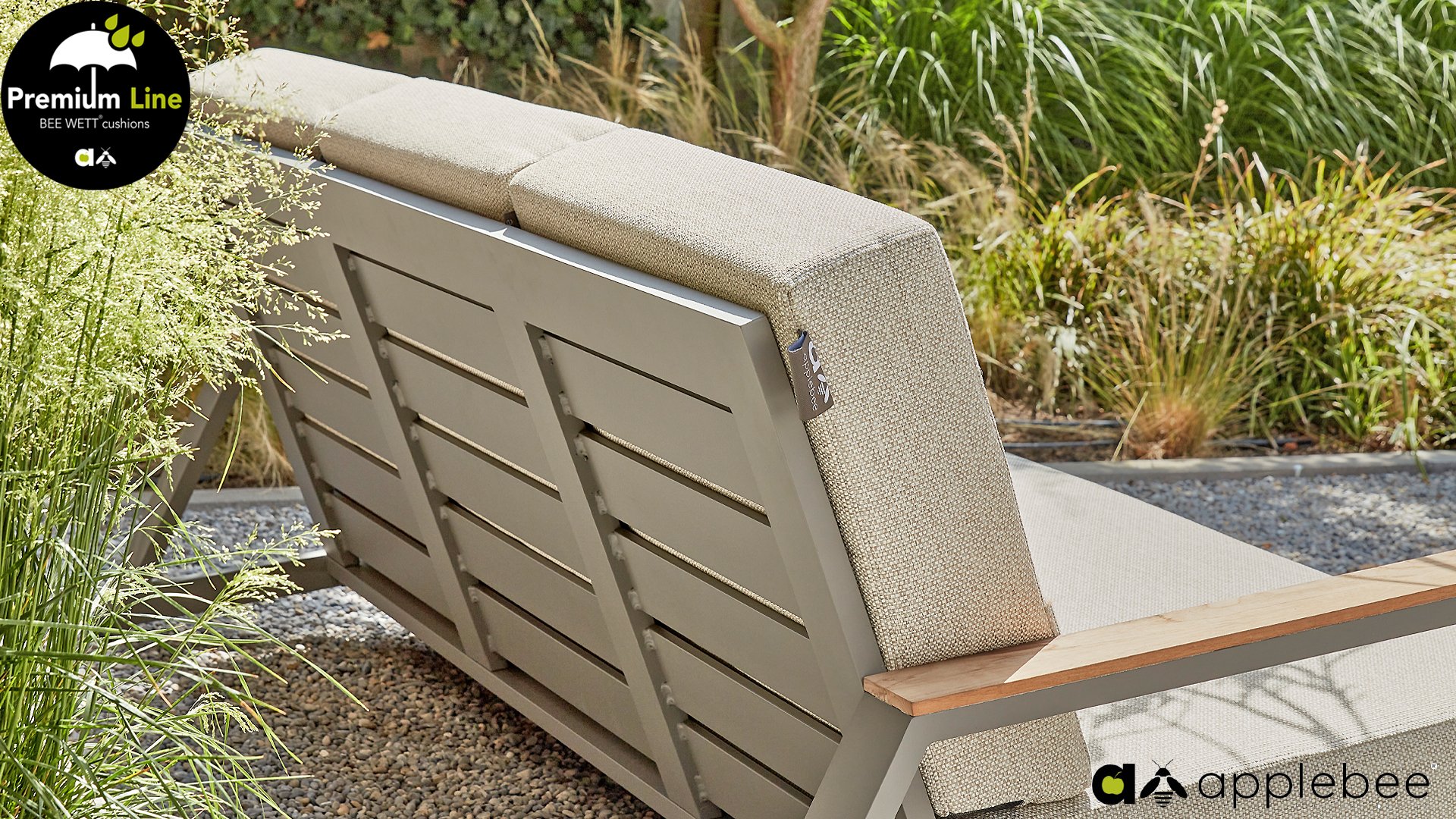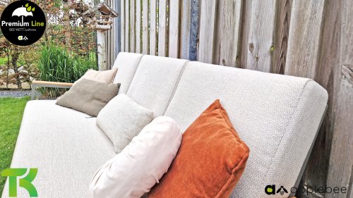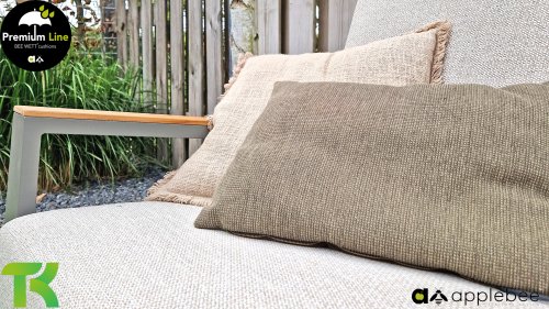 AppleBee Bee Wett sind spezielle wetterfeste Kissen die natürlich draußen liegen bleiben können. Die abnehmbaren Hüllen werden aus den besten möglichen Stoffen hergestellt und sind alle waschbar auf 30°C. Der Stoff ist zusätzlich wasserabstoßend und garantiert UV-beständig. Eine offenes Gewebe an der Unterseite der Kissen sorgt für eine perfekte Drainage. Der Vorteil, dass die Bee Wett Kissen und Polster unglaublich viel schneller trocknen als vergleichbare andere Kissen. Das Stoff hat eine gute Beständigkeit gegen Verfaulen und Stockflecken und darüber hinaus UV-beständig, weich, komfortabel und feuchtigkeitsabstoßend ist. Die Polster sind ausziehbar und waschbar.