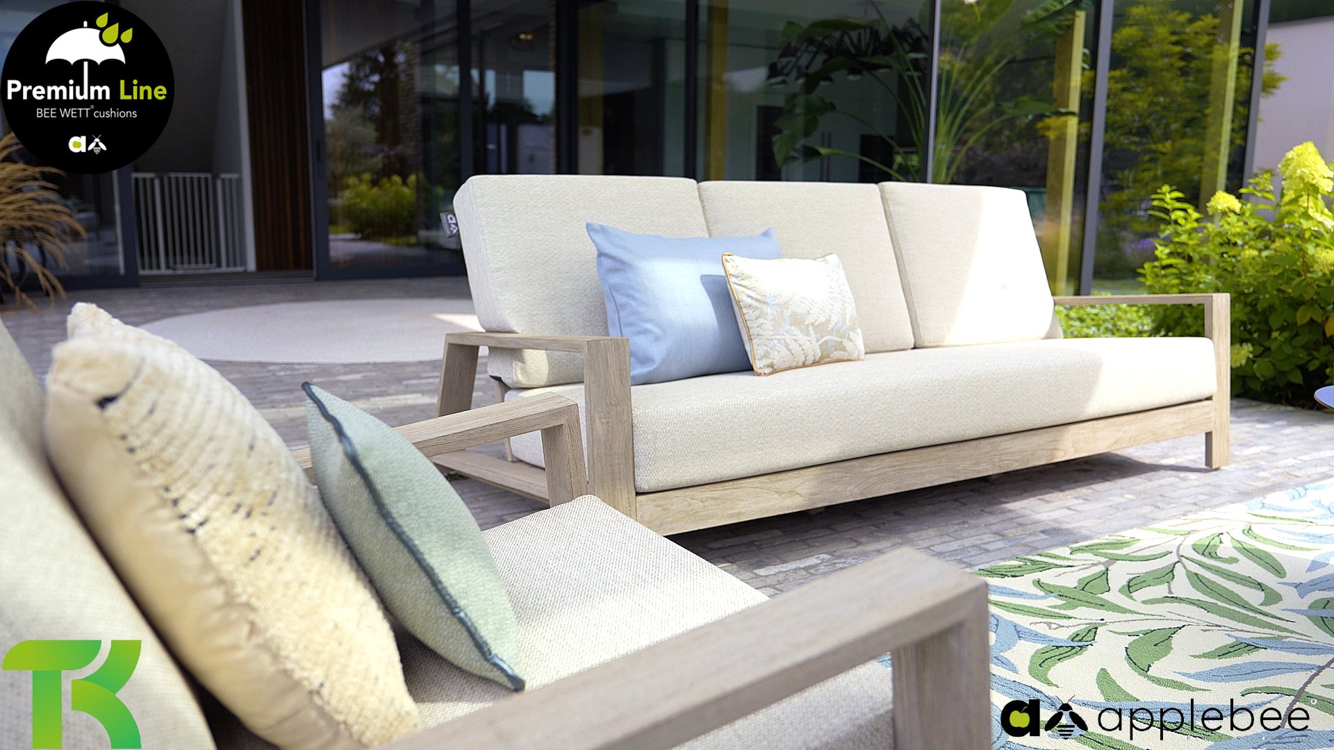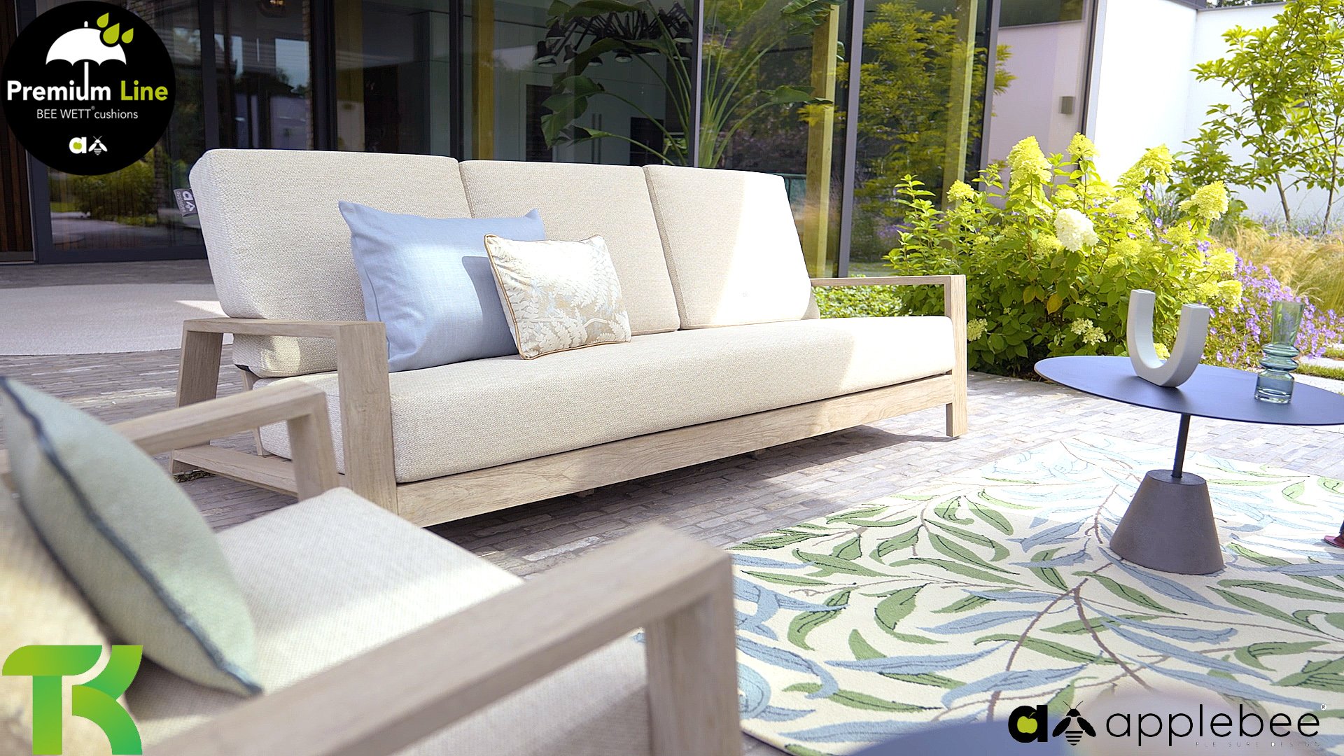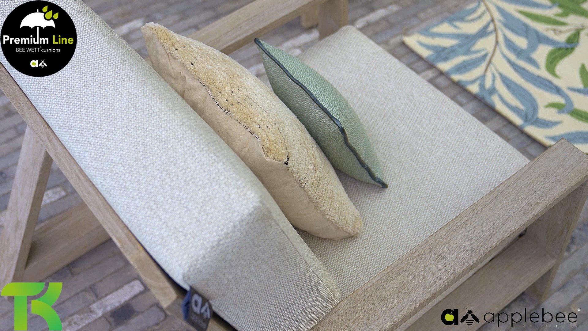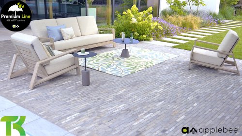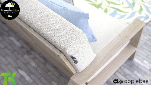 AppleBee Bee Wett sind spezielle wetterfeste Kissen die natürlich draußen liegen bleiben können. Die abnehmbaren Hüllen werden aus den besten möglichen Stoffen hergestellt und sind alle waschbar auf 30°C. Der Stoff ist zusätzlich wasserabstoßend  und garantiert UV-beständig. Eine offenes Gewebe an der Unterseite der Kissen sorgt für eine perfekte Drainage. Der Vorteil, dass die Bee Wett Kissen und Polster unglaublich viel schneller trocknen als vergleichbare andere Kissen. Das Stoff hat eine gute Beständigkeit gegen Verfaulen und Stockflecken und darüber hinaus UV-beständig, weich, komfortabel und feuchtigkeitsabstoßend ist. Die Polster sind ausziehbar und waschbar.