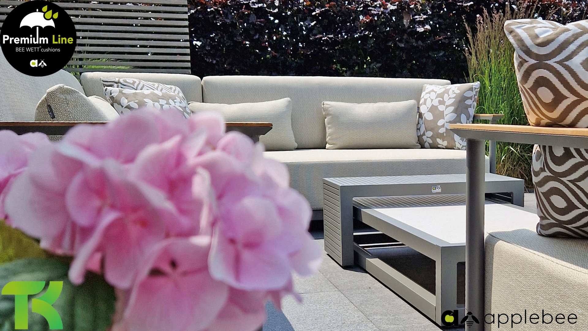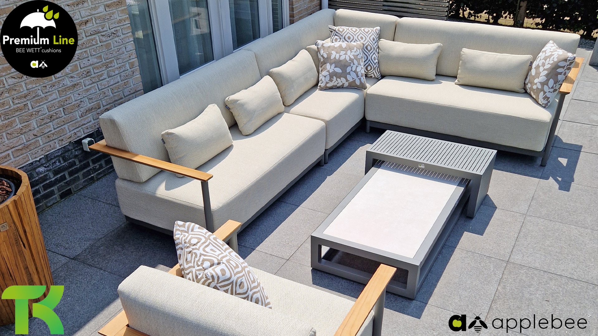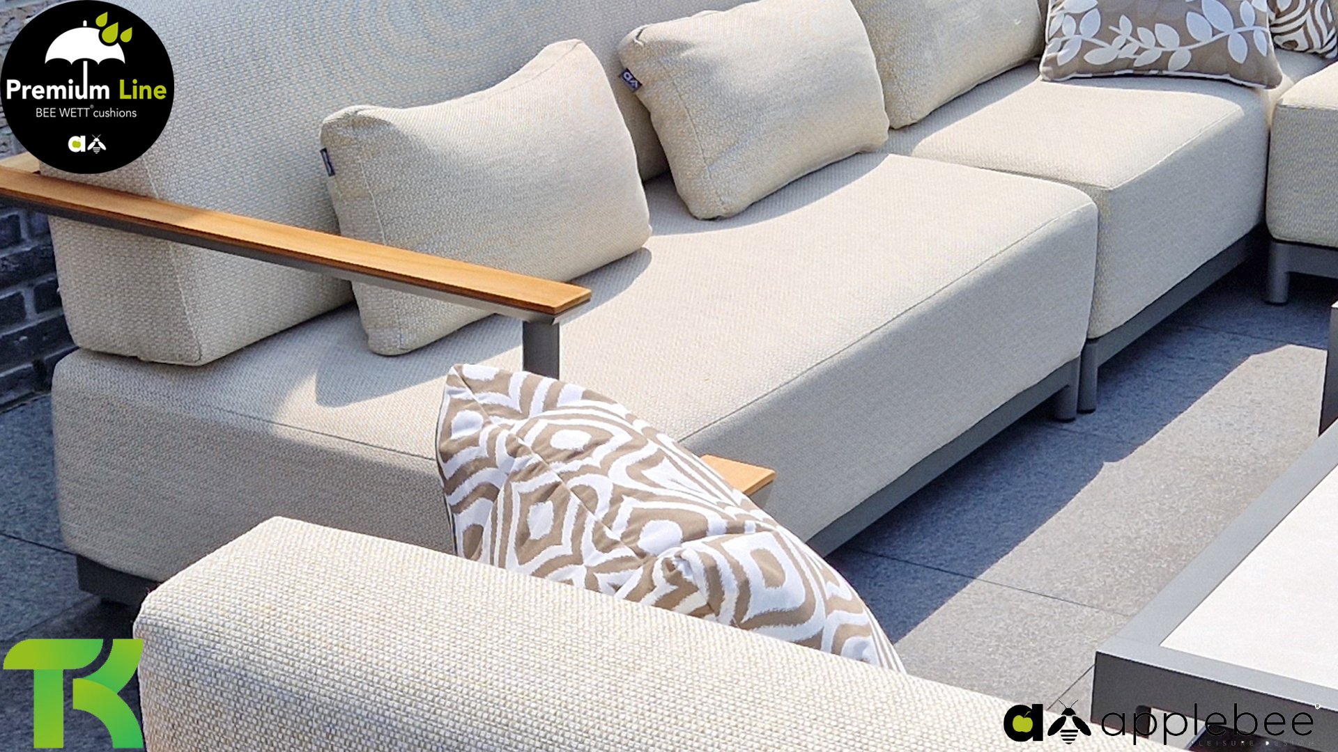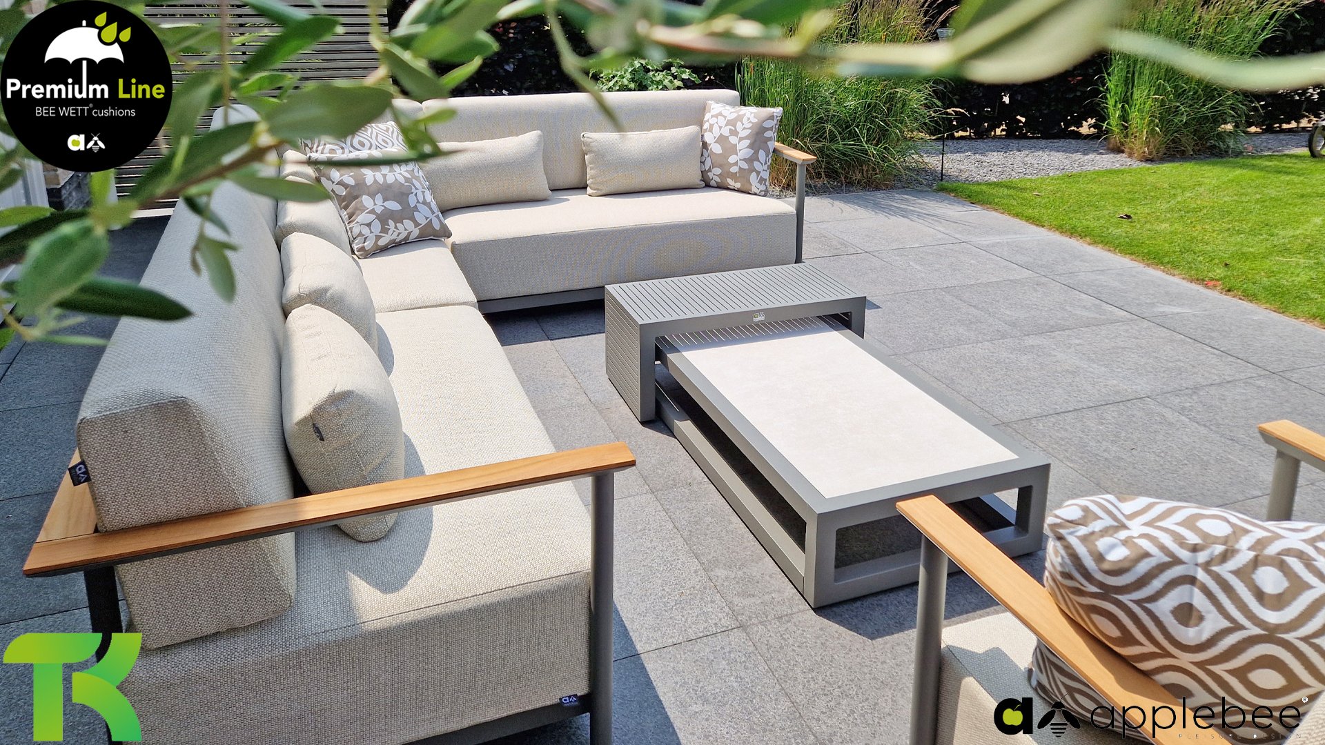AppleBee Bee Wett sind spezielle wetterfeste Kissen die natürlich draußen liegen bleiben können. Die abnehmbaren Hüllen werden aus den besten möglichen Stoffen hergestellt und sind alle waschbar auf 30°C. Der Stoff ist zusätzlich wasserabstoßend  und garantiert UV-beständig. Eine offenes Gewebe an der Unterseite der Kissen sorgt für eine perfekte Drainage. Der Vorteil, dass die Bee Wett Kissen und Polster unglaublich viel schneller trocknen als vergleichbare andere Kissen. Das Stoff hat eine gute Beständigkeit gegen Verfaulen und Stockflecken und darüber hinaus UV-beständig, weich, komfortabel und feuchtigkeitsabstoßend ist. Die Polster sind ausziehbar und waschbar.