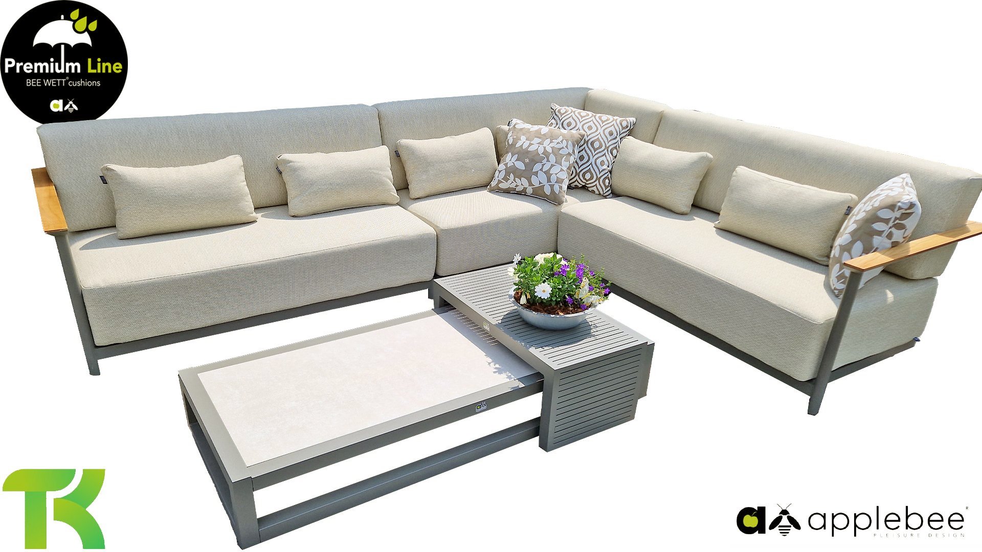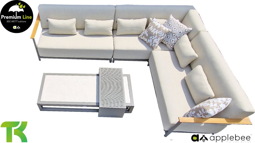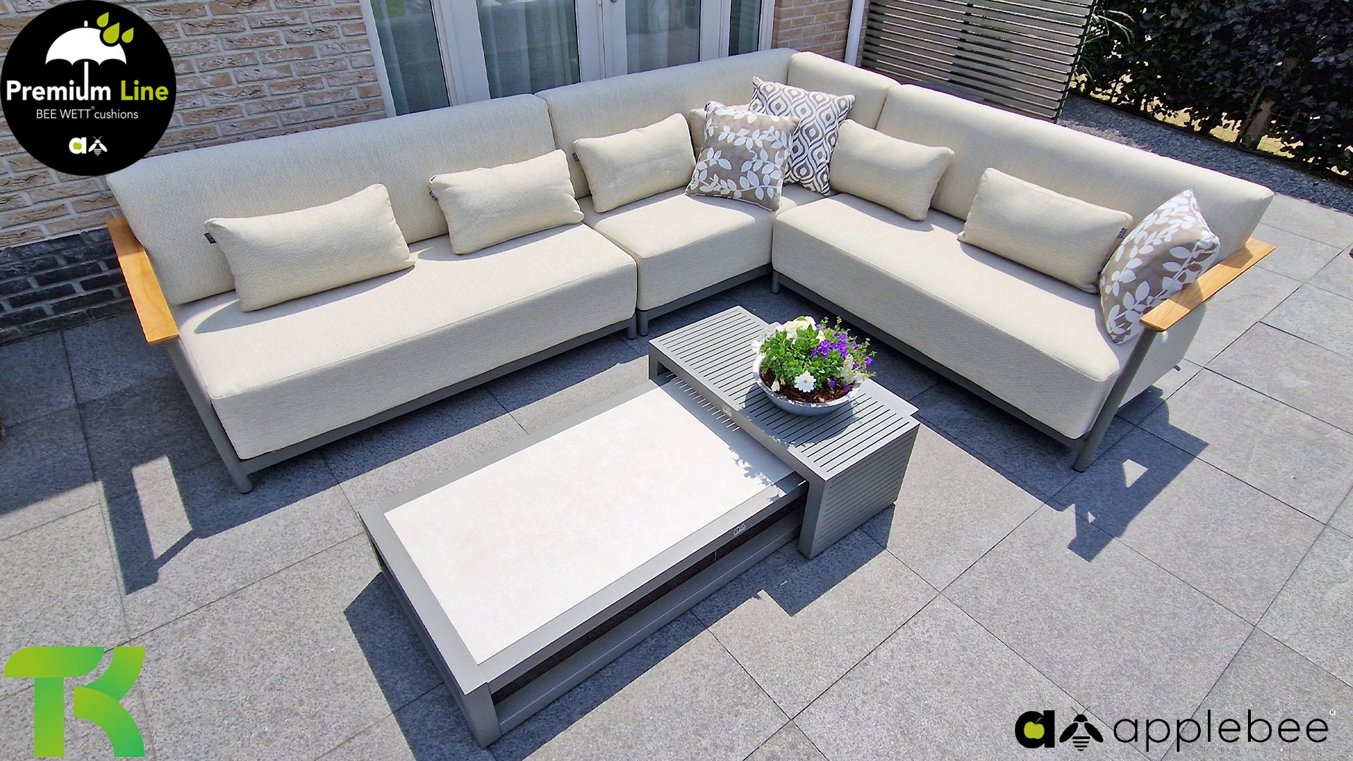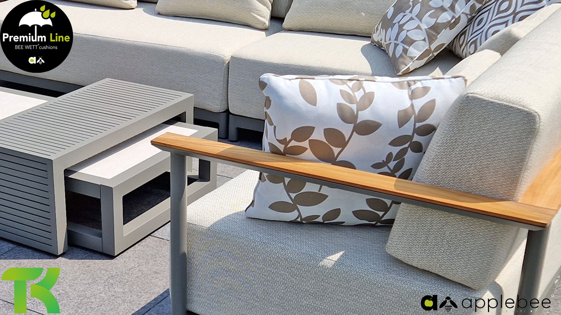 AppleBee Bee Wett sind spezielle wetterfeste Kissen die natürlich draußen liegen bleiben können. Die abnehmbaren Hüllen werden aus den besten möglichen Stoffen hergestellt und sind alle waschbar auf 30°C. Der Stoff ist zusätzlich wasserabstoßend  und garantiert UV-beständig. Eine offenes Gewebe an der Unterseite der Kissen sorgt für eine perfekte Drainage. Der Vorteil, dass die Bee Wett Kissen und Polster unglaublich viel schneller trocknen als vergleichbare andere Kissen. Das Stoff hat eine gute Beständigkeit gegen Verfaulen und Stockflecken und darüber hinaus UV-beständig, weich, komfortabel und feuchtigkeitsabstoßend ist. Die Polster sind ausziehbar und waschbar.